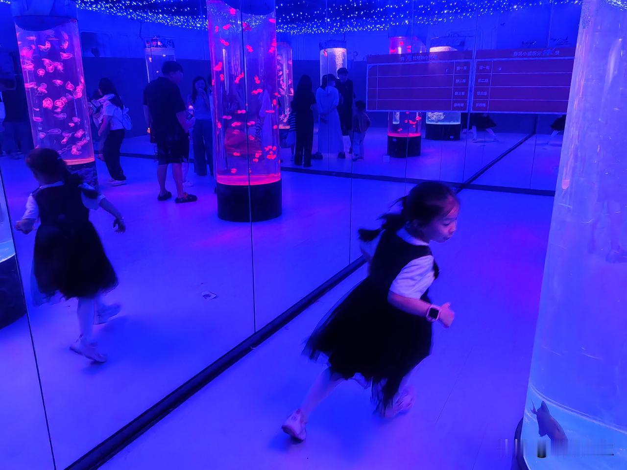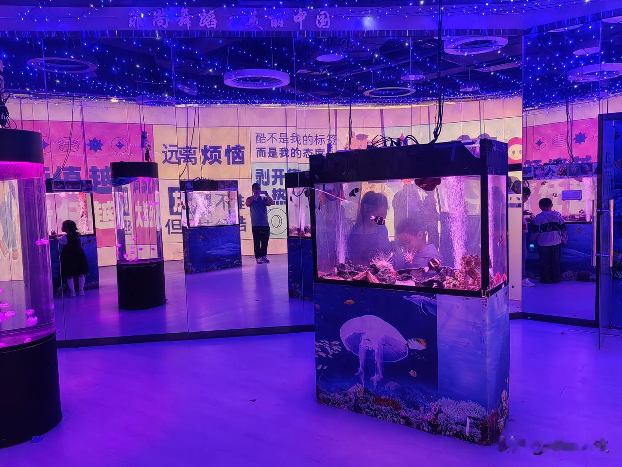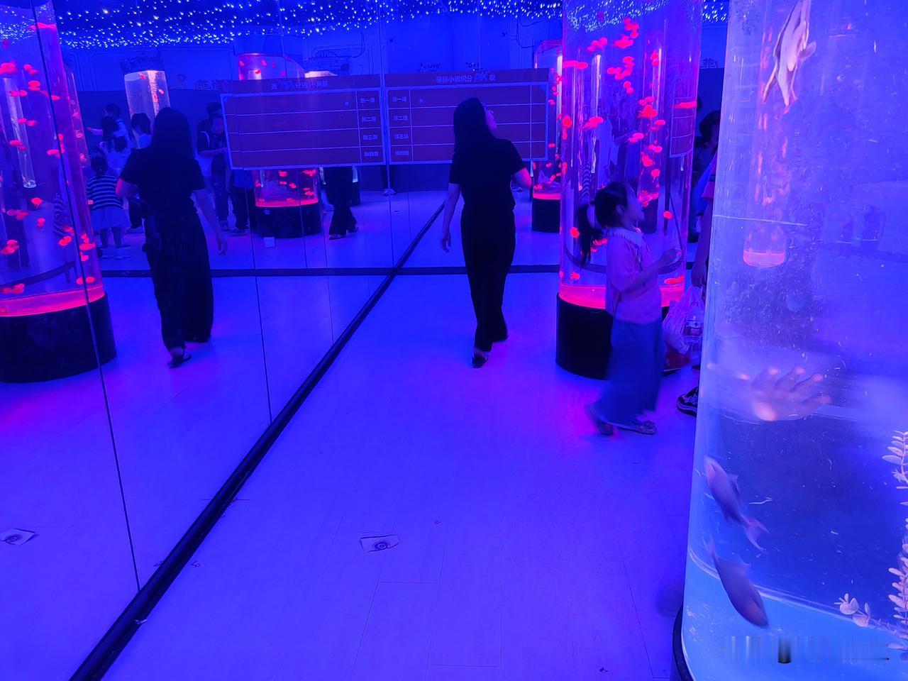 说难听点,里面就那几个鱼缸,还不如一些商场卖观赏鱼的种类多,密闭简陋的空间,房间三面都是镜子(原来是舞蹈室),这样一来形成了错觉,里面显得很宽敞,原来 4 个鱼缸的,一下子一眼望过去好像有 12 个鱼缸一样,我甚至都敢确定,10 个家长进去 有 8~9 个是后悔的。吃相未免有点难看,但终究是一个愿打一个愿挨,孩子不懂拼命地要吵着去看,大人虽然懂了但又熬不过孩子的叽歪,所以,看过一次就好,绝无下次的冤大头。