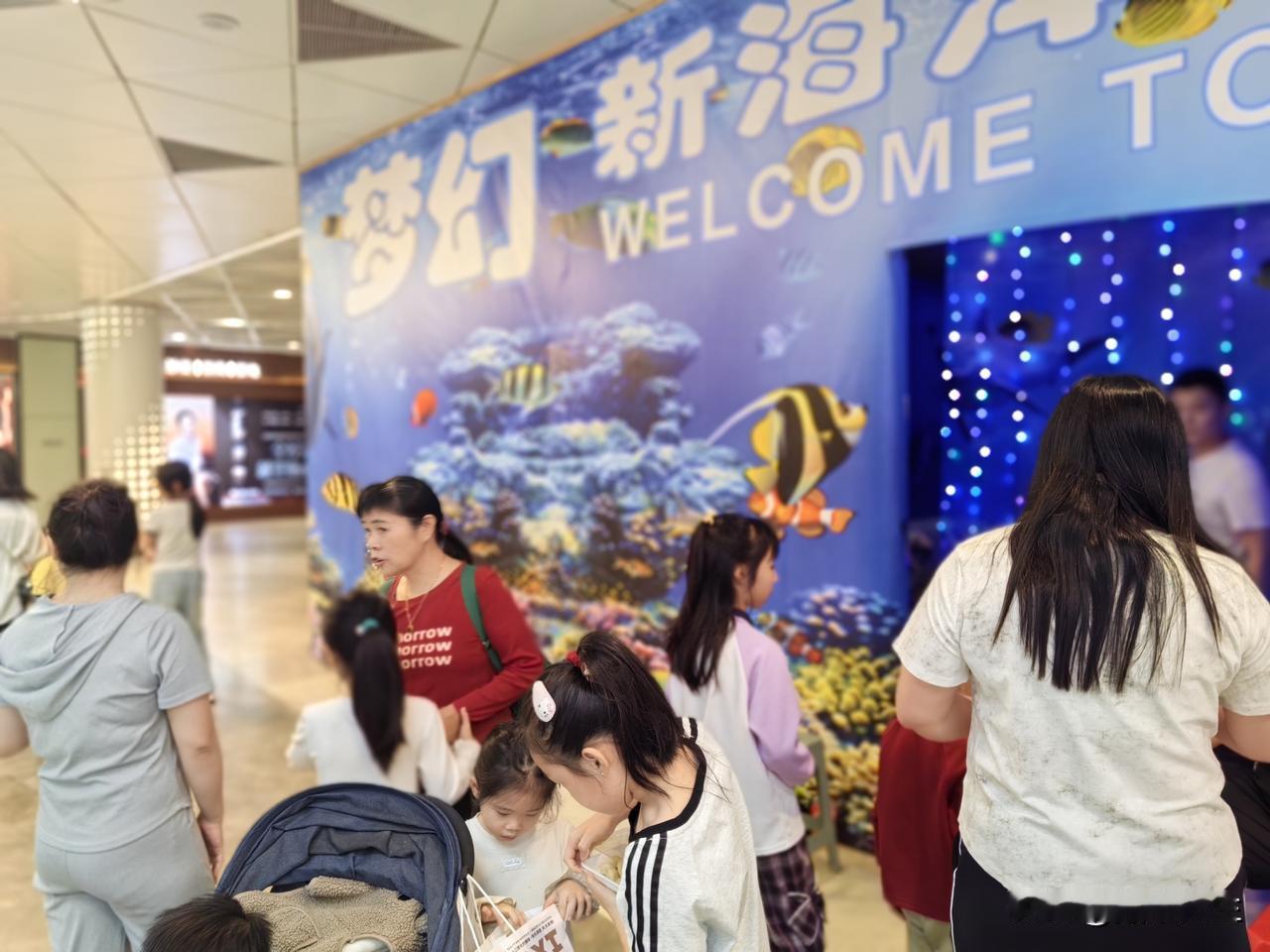 清明这几天,吾悦广场四楼突然冒出一个什么新海洋世界,老婆前几天带孩子逛街的时候收到那个宣传单,这不清明放假了孩子一直想要去,没法子只能去一趟,倒不是说有多宠溺孩子,另一方面我也要让孩子知道,宣传的和实际的终究有差,这也是社会中的一课。这个所谓的新海洋公园位置在 4 楼原来培训机构跳舞的地方,地方不大,可能也就是租用这么几天而已,所以你也大概能想象到里面能放几只海洋生物,门票 25 ,我带着女儿进去就是 50 块钱,在里面待了不到 10 分钟就出来了,看得出来小孩子也是有点小失望的。