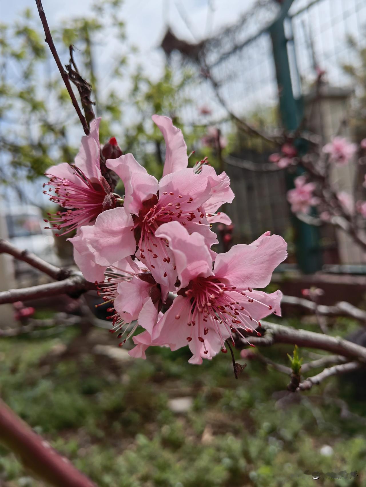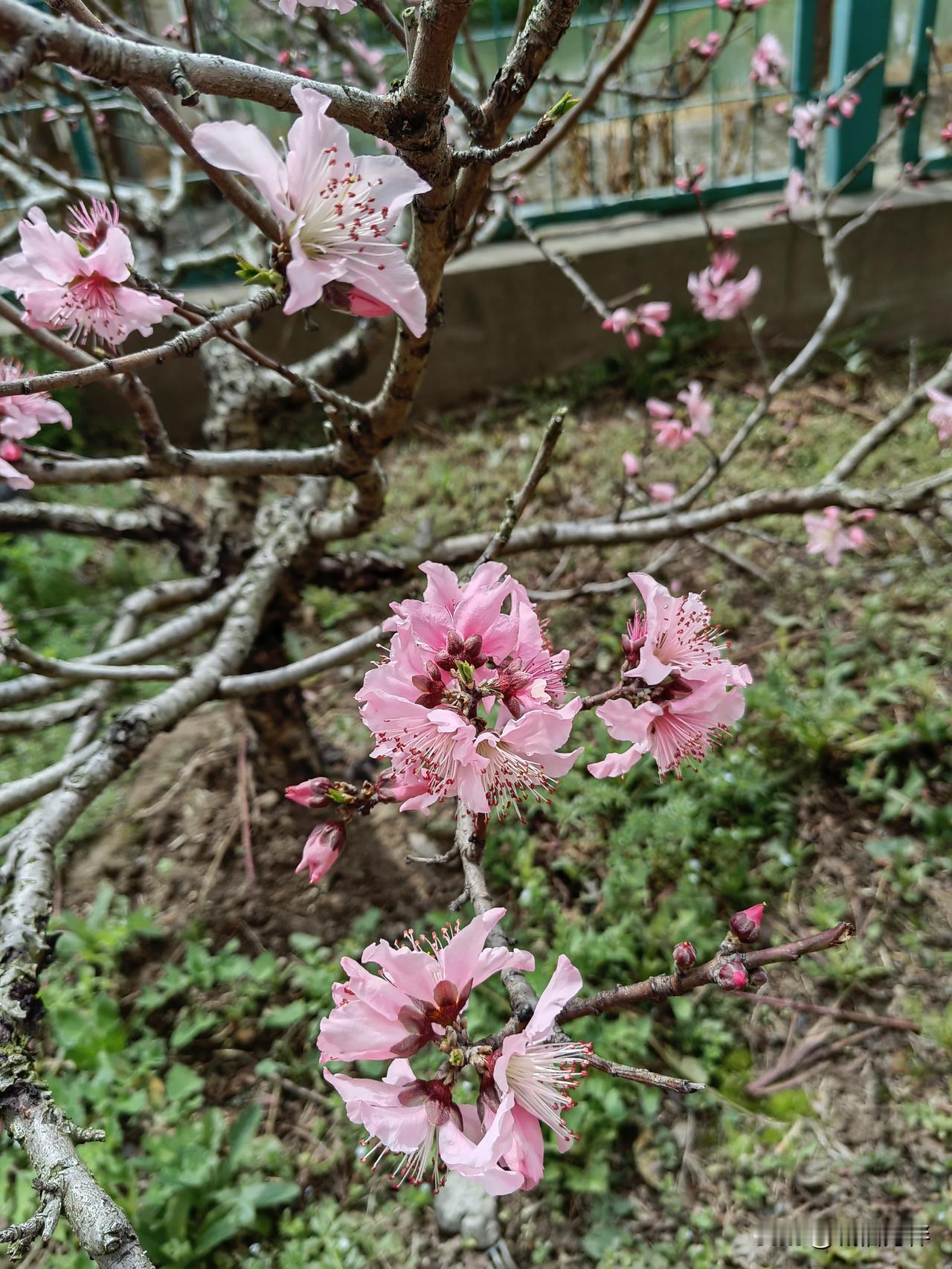 下午回来,我门前的黄桃树正花开正艳,拍了几张以飨各位老友。最后一张是樱桃花。