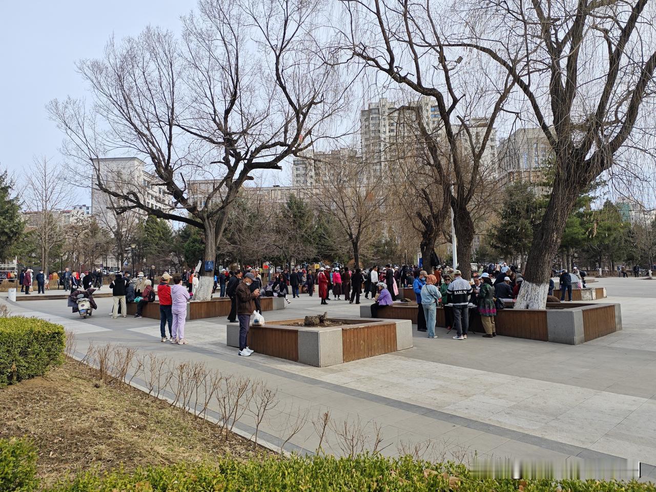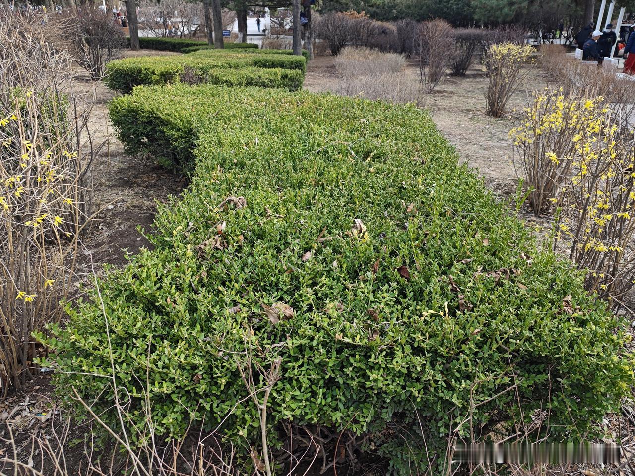 四瓣连翘开得更热烈了(见图1),灌木丛已现一片翠绿(见图2),甬路边的小草,已经拱出了地皮(见图3)。跳舞的老人又公园相会(见图4),伴随着音箱里的歌声,扭动起曼妙的老腰来。