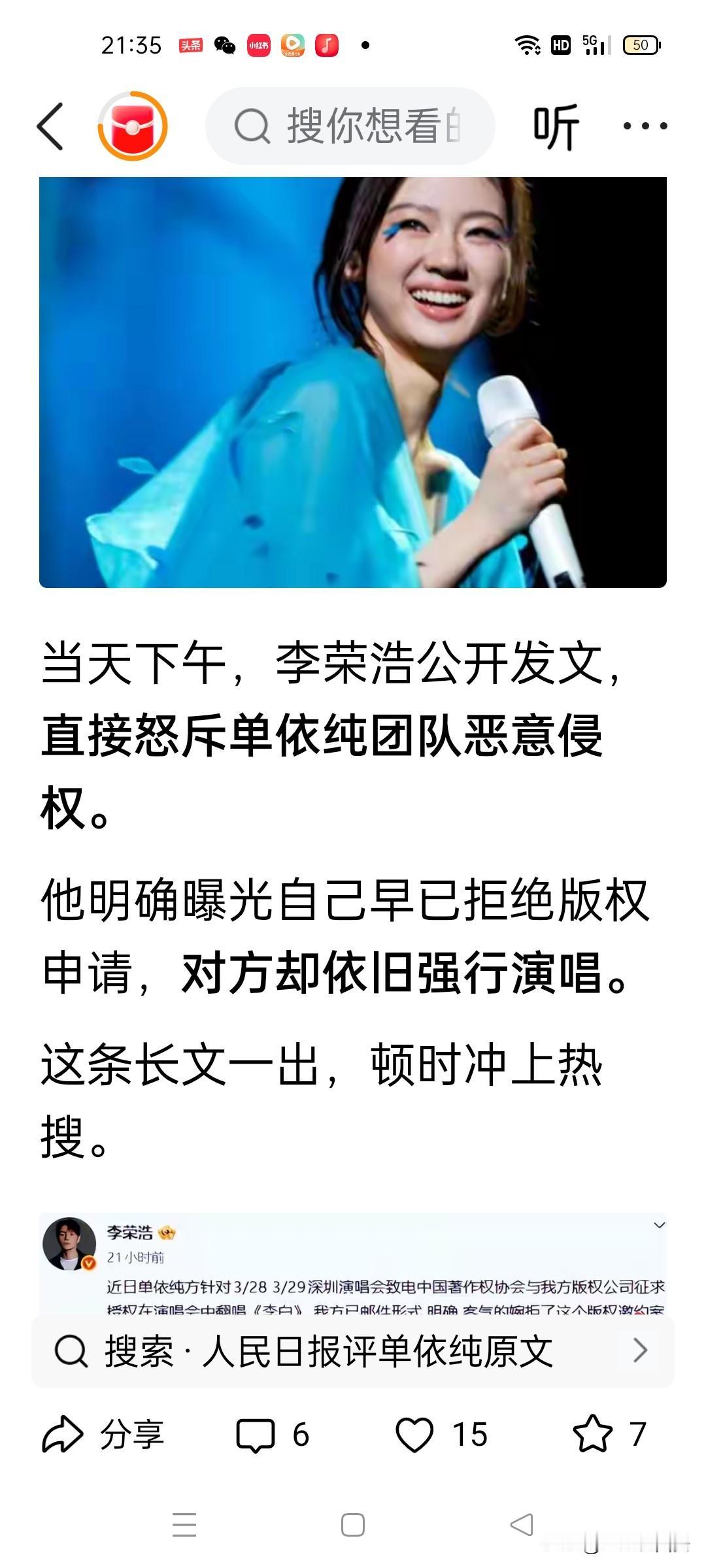 对于单依纯与李荣浩的版权纠纷你怎么看?欢迎评论区各抒己见,一起讨论关于侵权担责那些事儿。