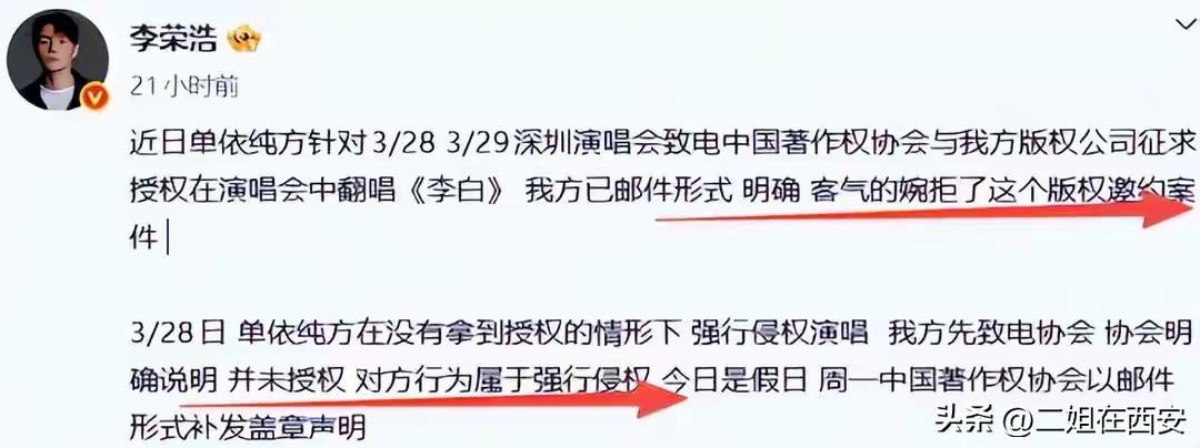 又能怎?还不是最终向版权所有人公开道歉,并向前辈李荣浩承诺永不再唱《李白》,且删