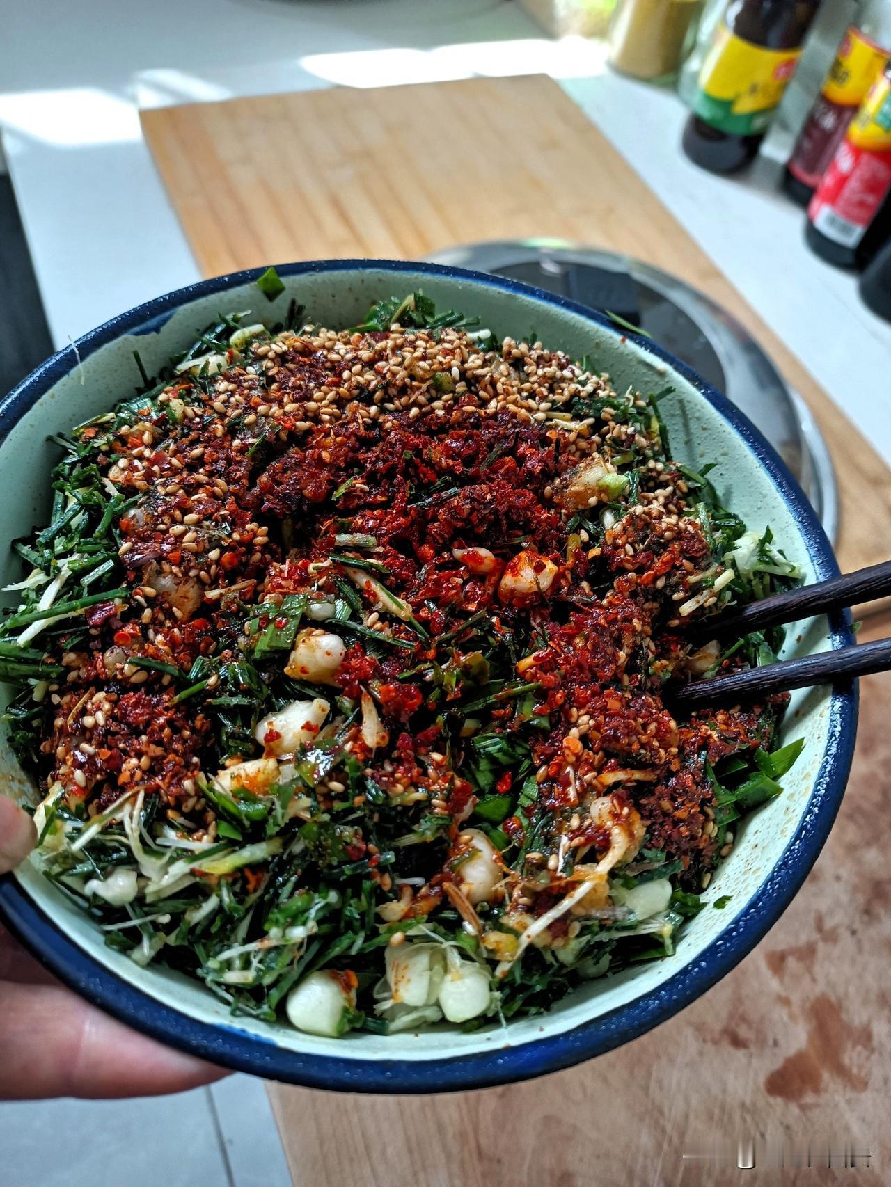 用油泼小蒜一拌,味道鲜美无比,堪称完美的一次野味品鉴,哈哈,就不知道天天吃野菜,皮肤会不会变成绿色?