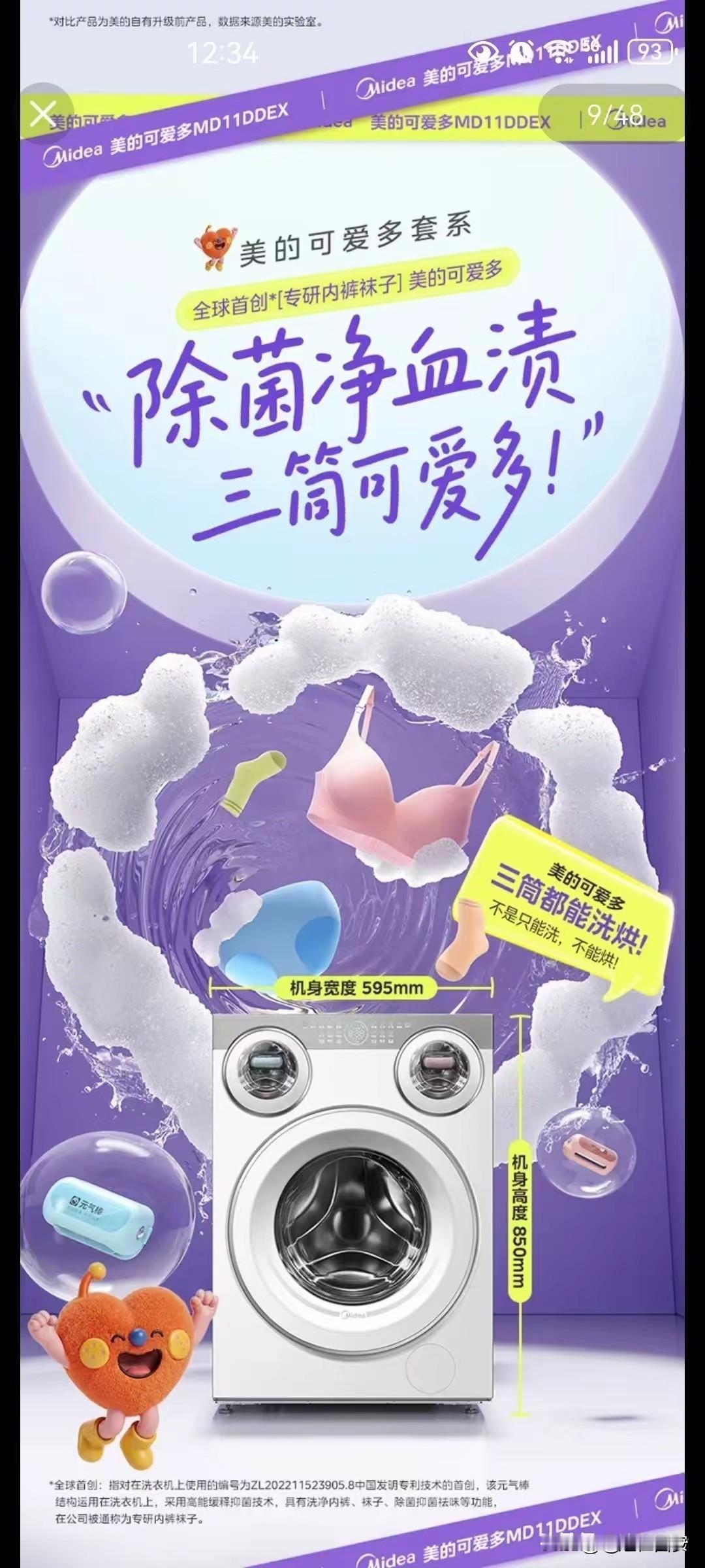 全网话题破10亿,累计销量破30000台,美的三筒可爱多震撼登场,内衣、袜子、外
