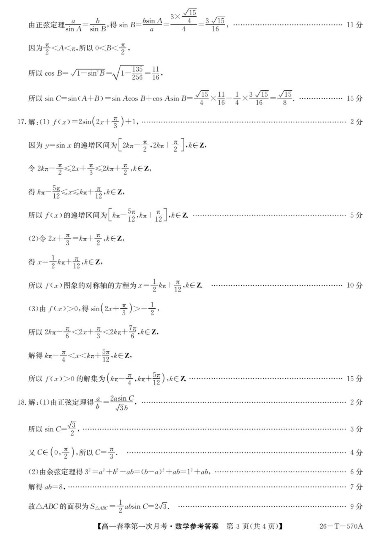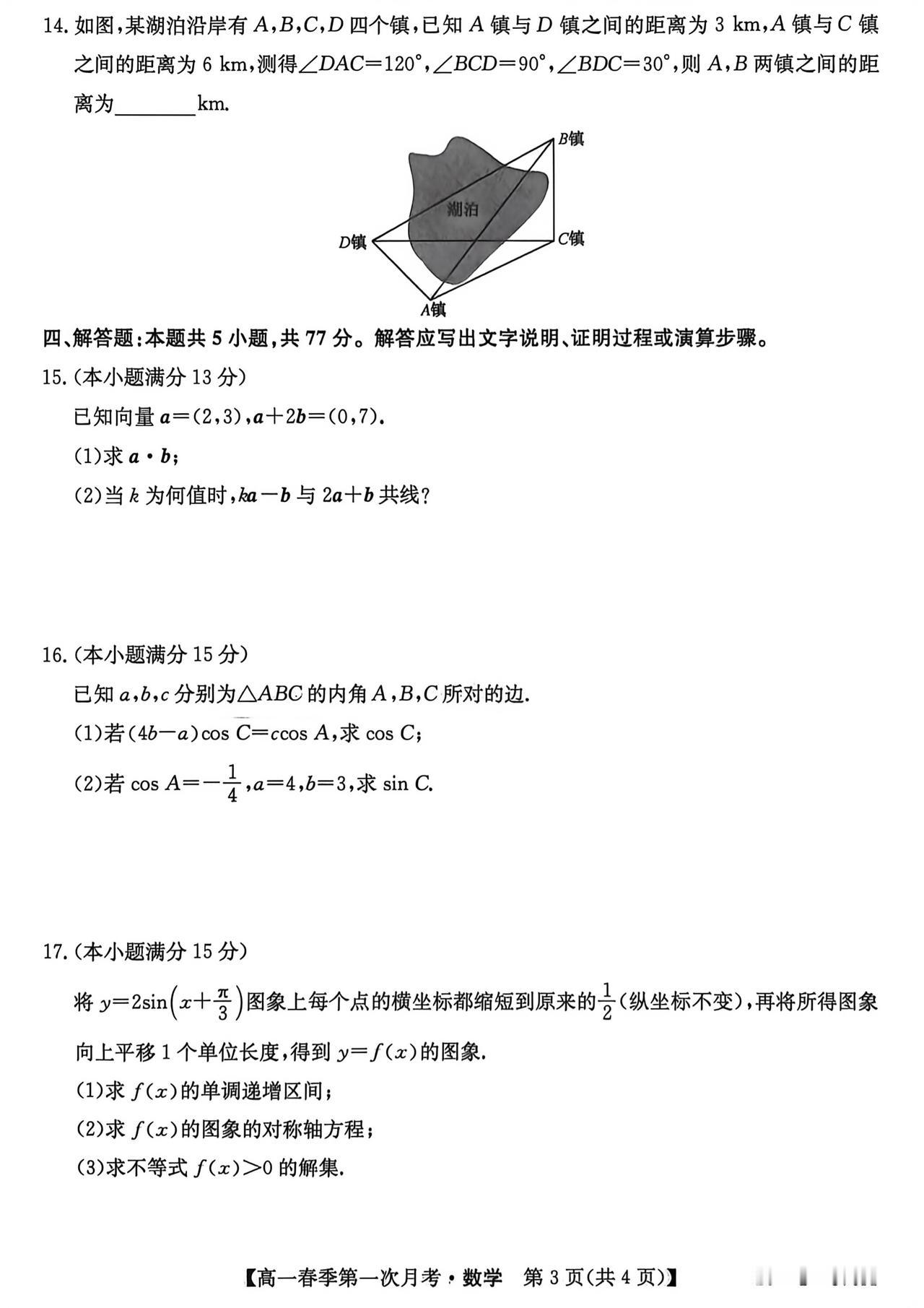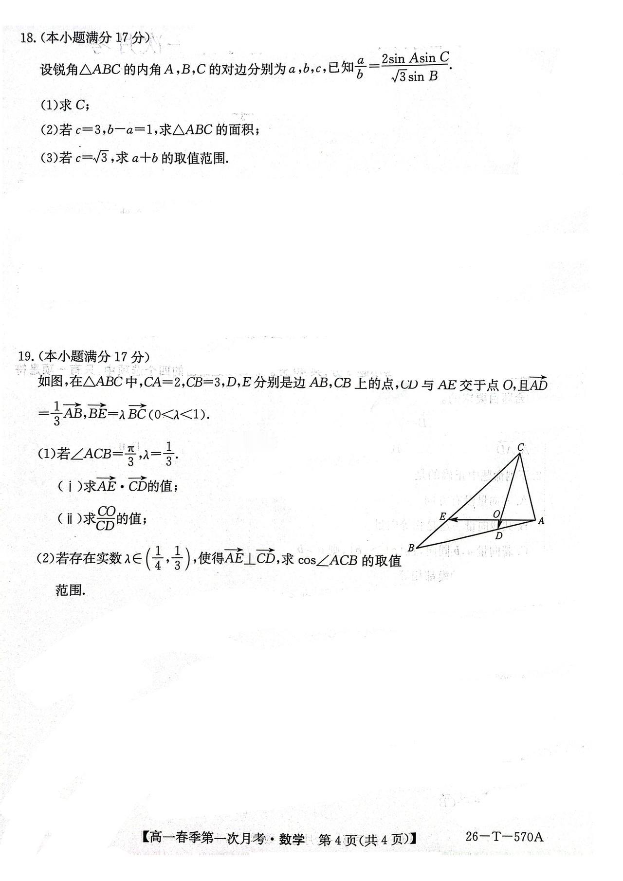 云南省楚雄市2026年上学期高一4月阶段检测数学试题及答案