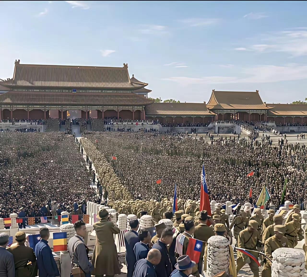 当最后一把战刀放下的瞬间,广场瞬间沸腾!“中国万岁!”“胜利万岁!”的呼声震彻云霄,连太和殿的红墙黄瓦都仿佛在欢呼。短短25分钟,却终结了中华民族的百年屈辱。