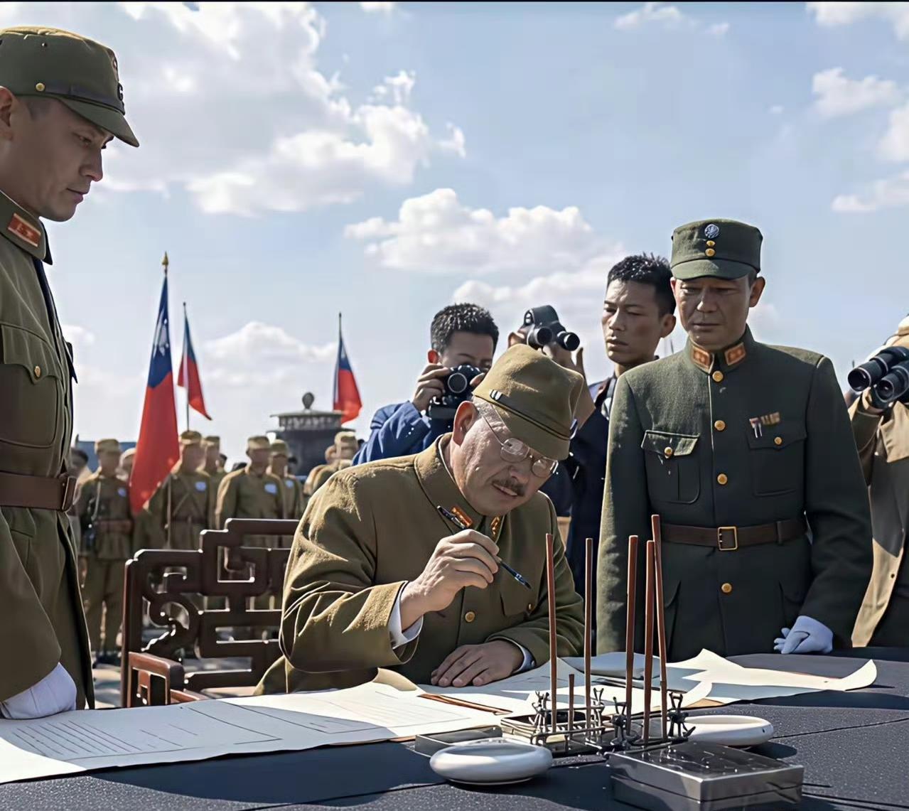上午10时10分,景山军号长鸣,受降仪式正式开始。日军华北方面军司令官根本博带着21名军官,垂头丧气走进广场,再也没了当年侵华的嚣张气焰。他们在投降书上签字盖章,随后逐一解下佩刀,放在受降桌上——这把曾沾满中国人民鲜血的战刀,成了侵略者的罪证。