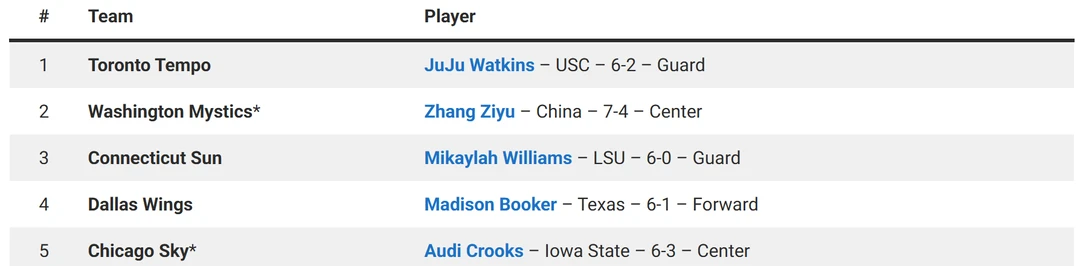 今日进行的WNBA选秀大会,张子宇在亚洲赛场的两大宿敌希尔斯(24年U18亚洲杯决赛14投12中独揽31分15篮板6助攻战胜中国队)与田中心(去年亚洲杯决赛首节独得21分最终击败中国队)先后在26和38顺位被多伦多节奏和金州女武神选中,随后的43顺位,张子宇的国青队友冉珂嘉也被亚特兰大梦想选中。