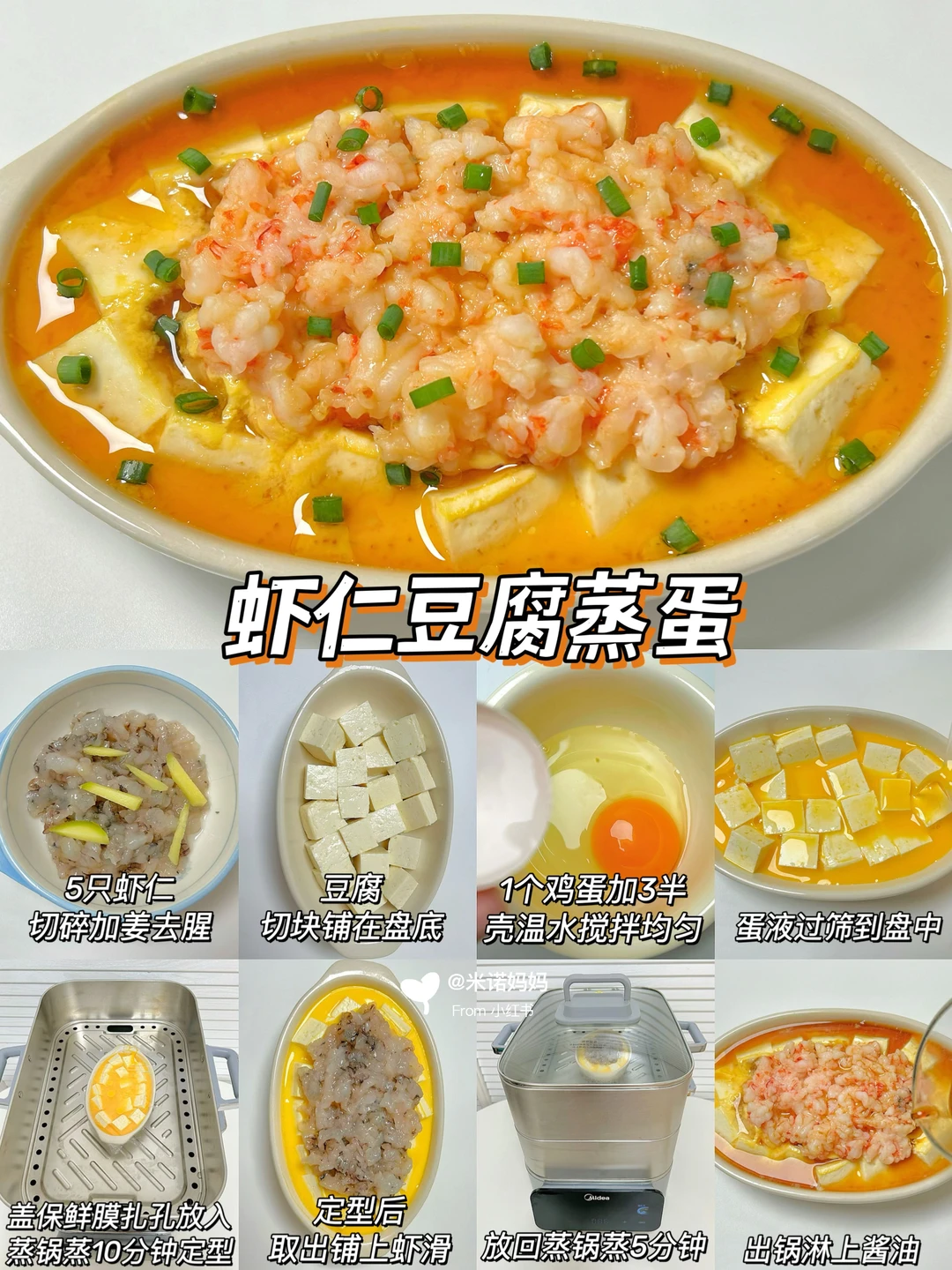3️⃣虾仁豆腐蒸蛋