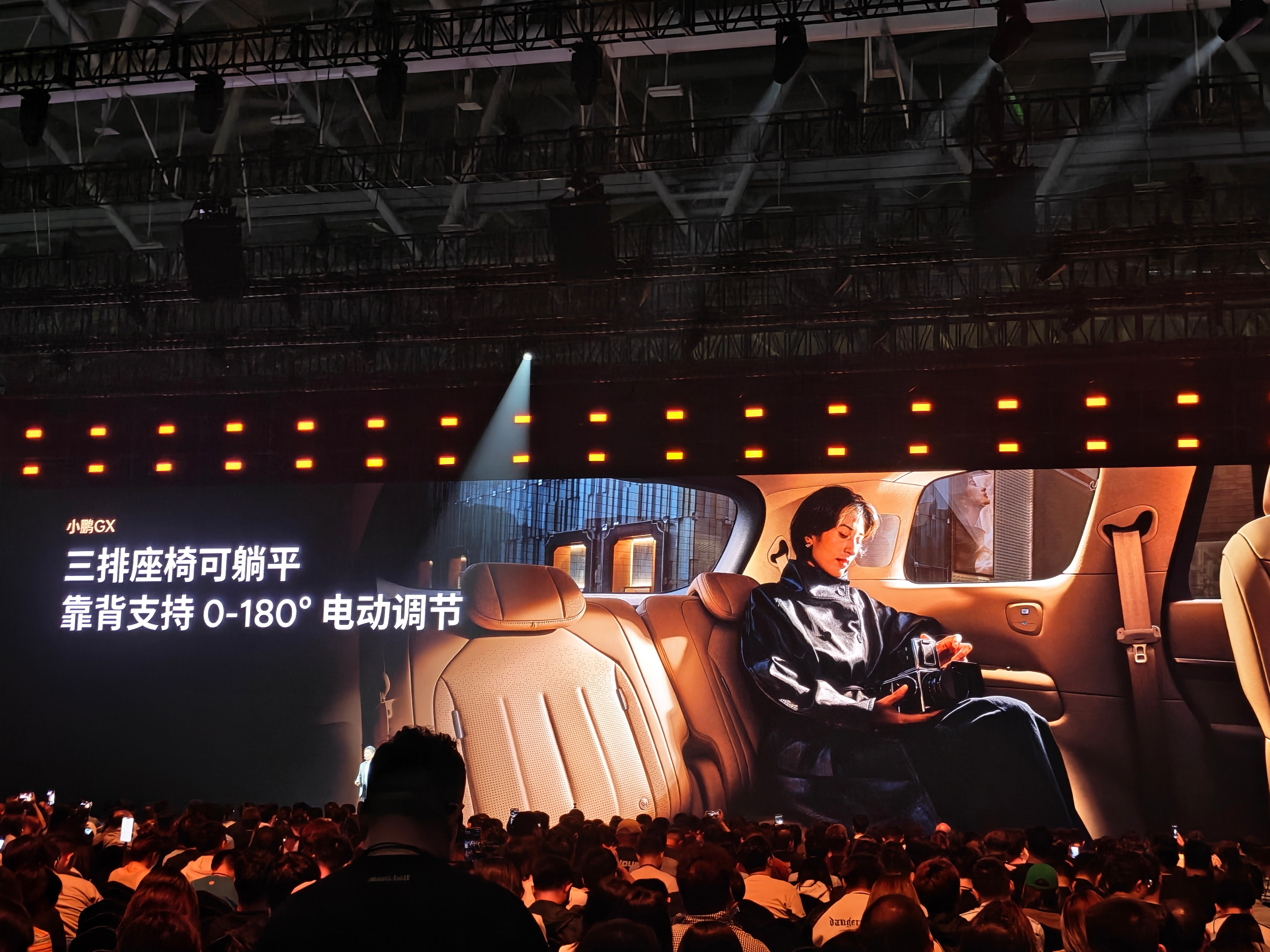 小鹏GX支持线控转向+后轮转向,转弯半径5.4米,同时,他又不像传统六座SUV“三排将就用”,第三排竟然还支持180度电动躺平。