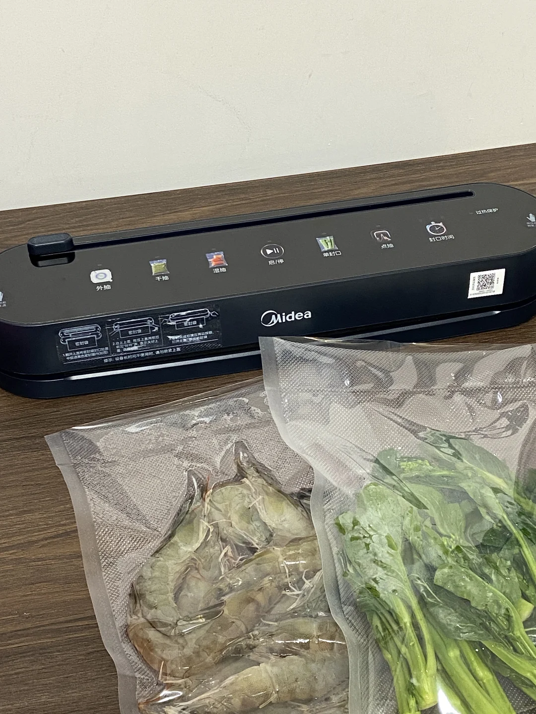 平常做饭备菜时候呀,食材买到家不及时做完又容易坏掉,最近用这个美的“小鲜封”真空封口机,不浪费食材又能保鲜!彩色大屏幕操作方便,干抽、湿抽、封口功能多多,三级封口可以自己调节,还有过热保护,用起来还挺安心的!