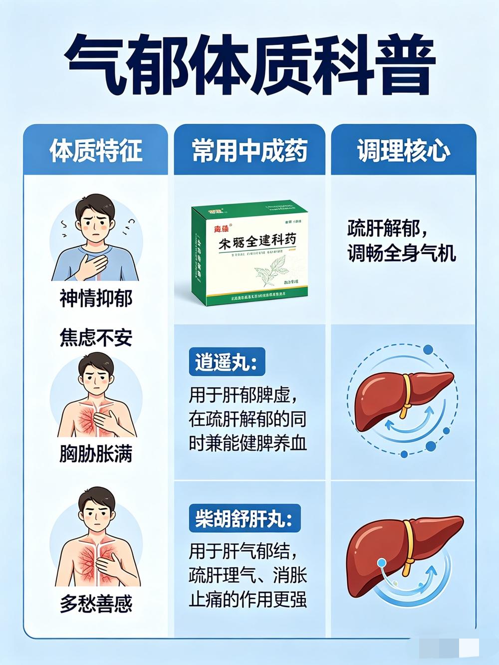· 调理核心:疏肝解郁,调畅全身气机。