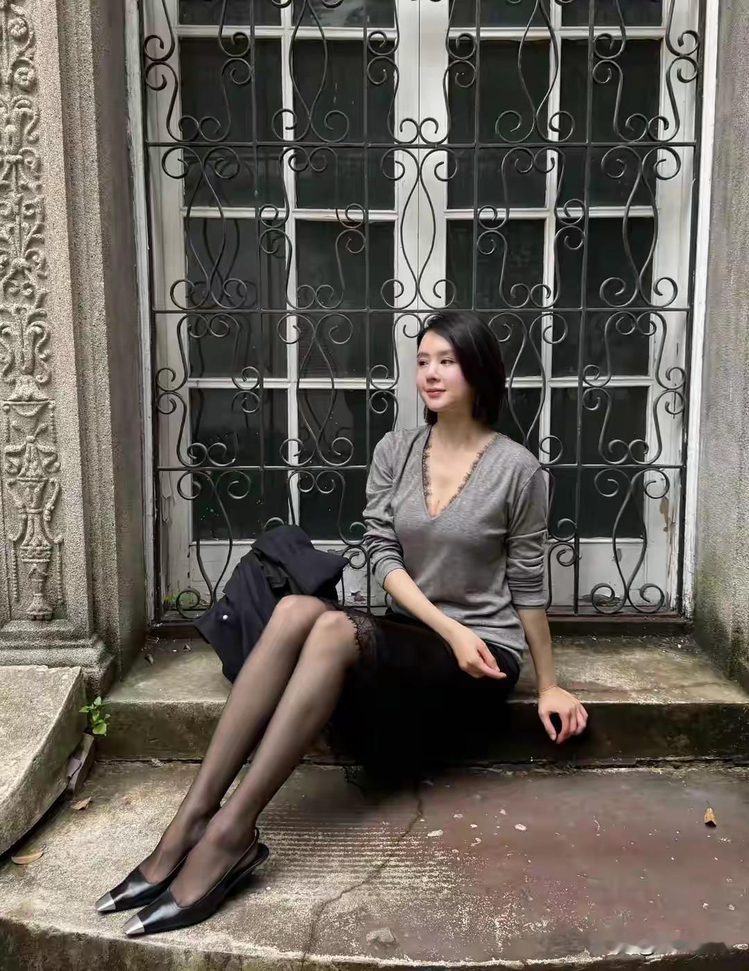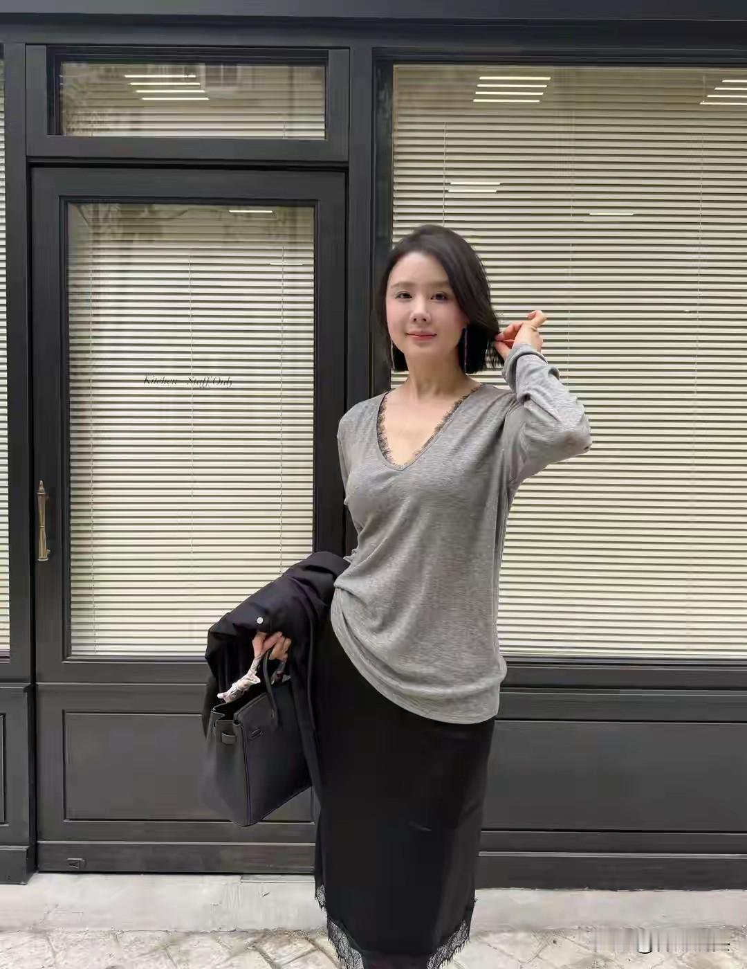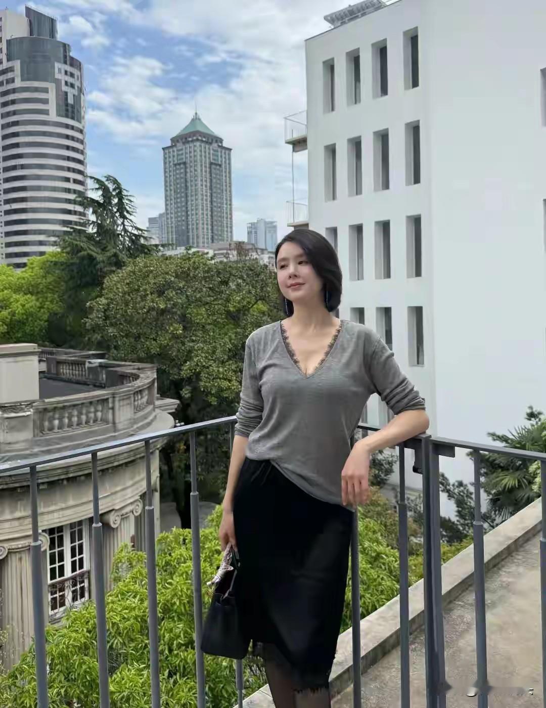 都市绿意中,优雅漫步的时尚女性