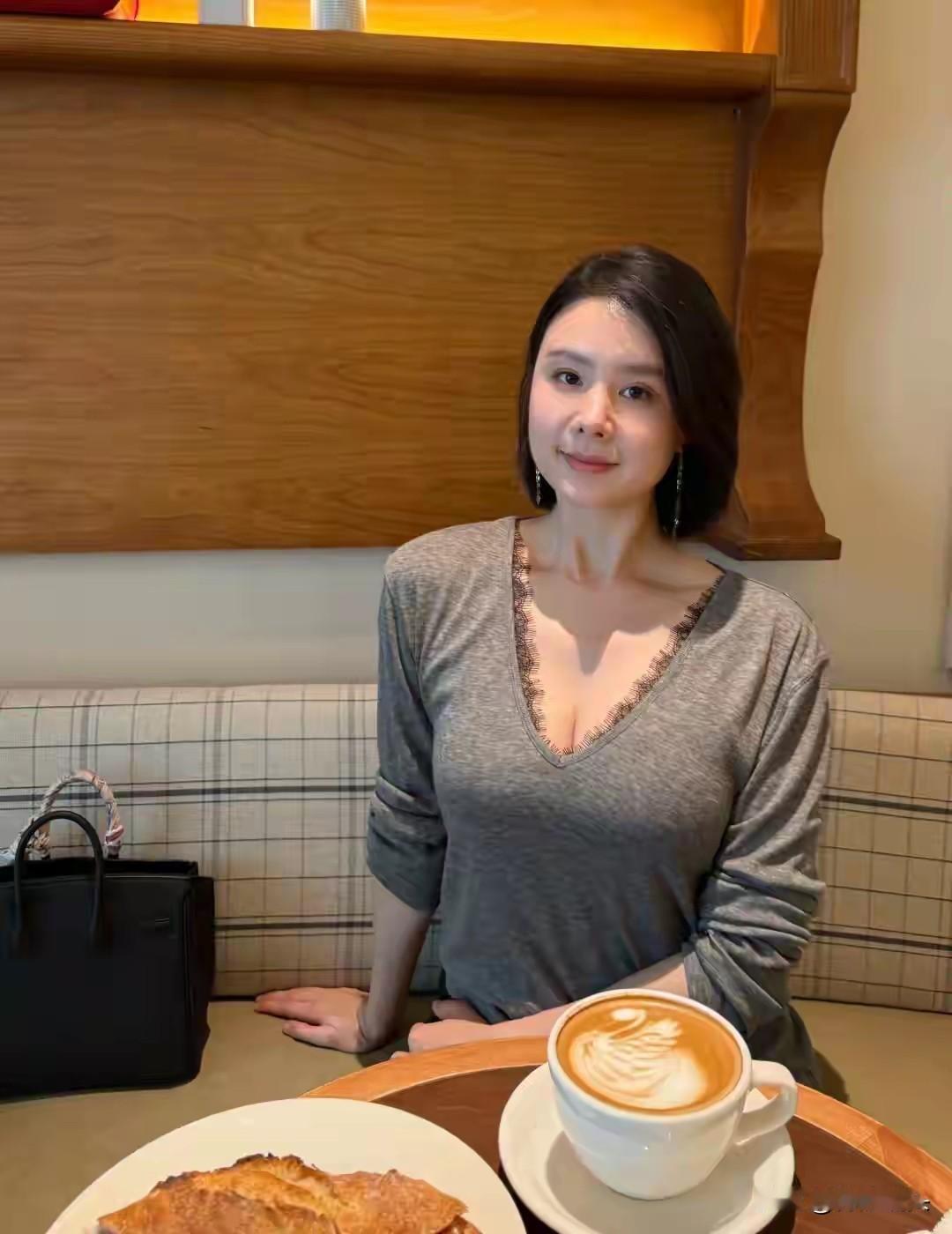 优雅咖啡馆里的迷人少女,温暖色调的穿搭,尽显都市时尚感。