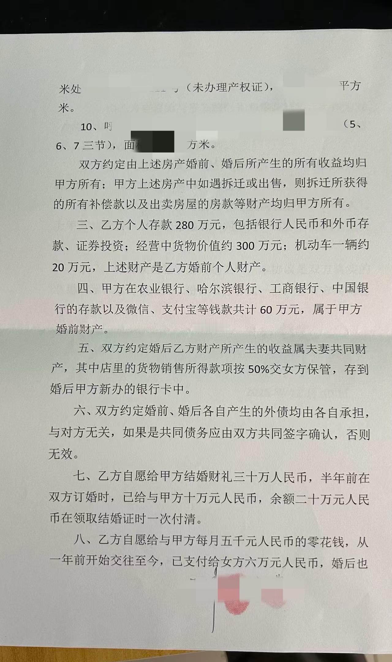 协议里写他爸有280万存款,全部列为他的“婚前个人财产”。但这280万里面有200万,是之前一套经适房写了网友名字和他爸的房子卖房款的一半(房子400多w),法律上这200万应该属于网友,网友是共有产权人