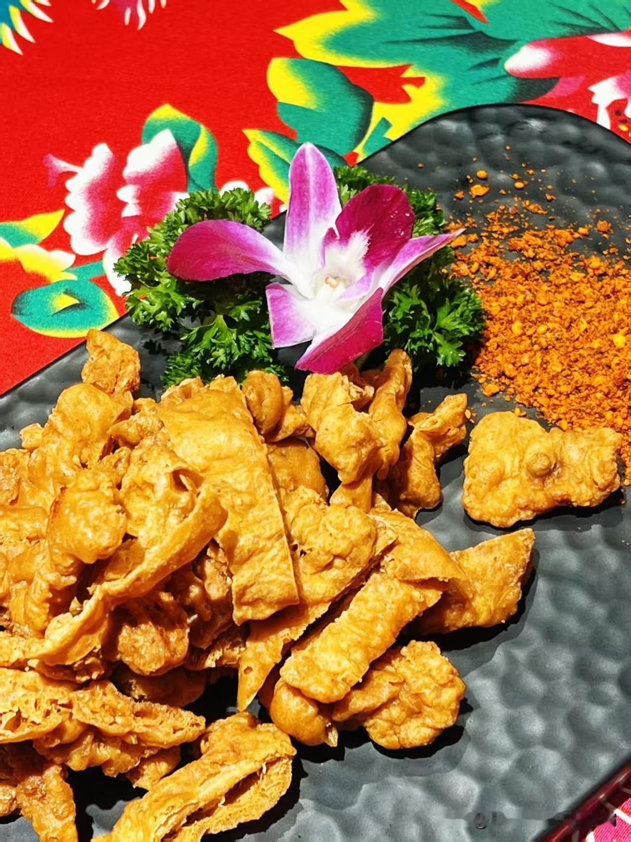 另外乐山那个牛咡桥某店的名食“鸡豆花”(又名雪花鸡淖和雪山一点红),鸡胸肉捶打成泥,与蛋清、高汤交融,如雪柔嫩,一点麻辣味都没有;还有九大碗主角之一甜烧白,以五花肉、豆沙、糯米蒸制,甜蜜软糯,丝毫不见辛辣。