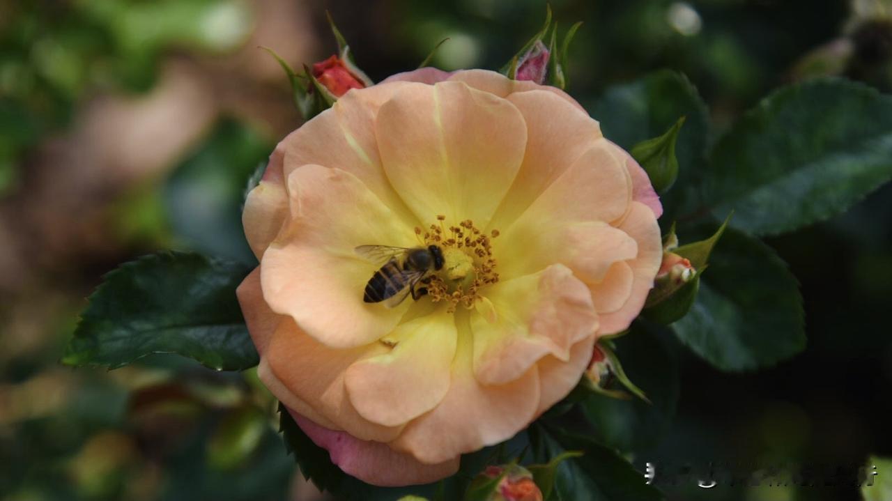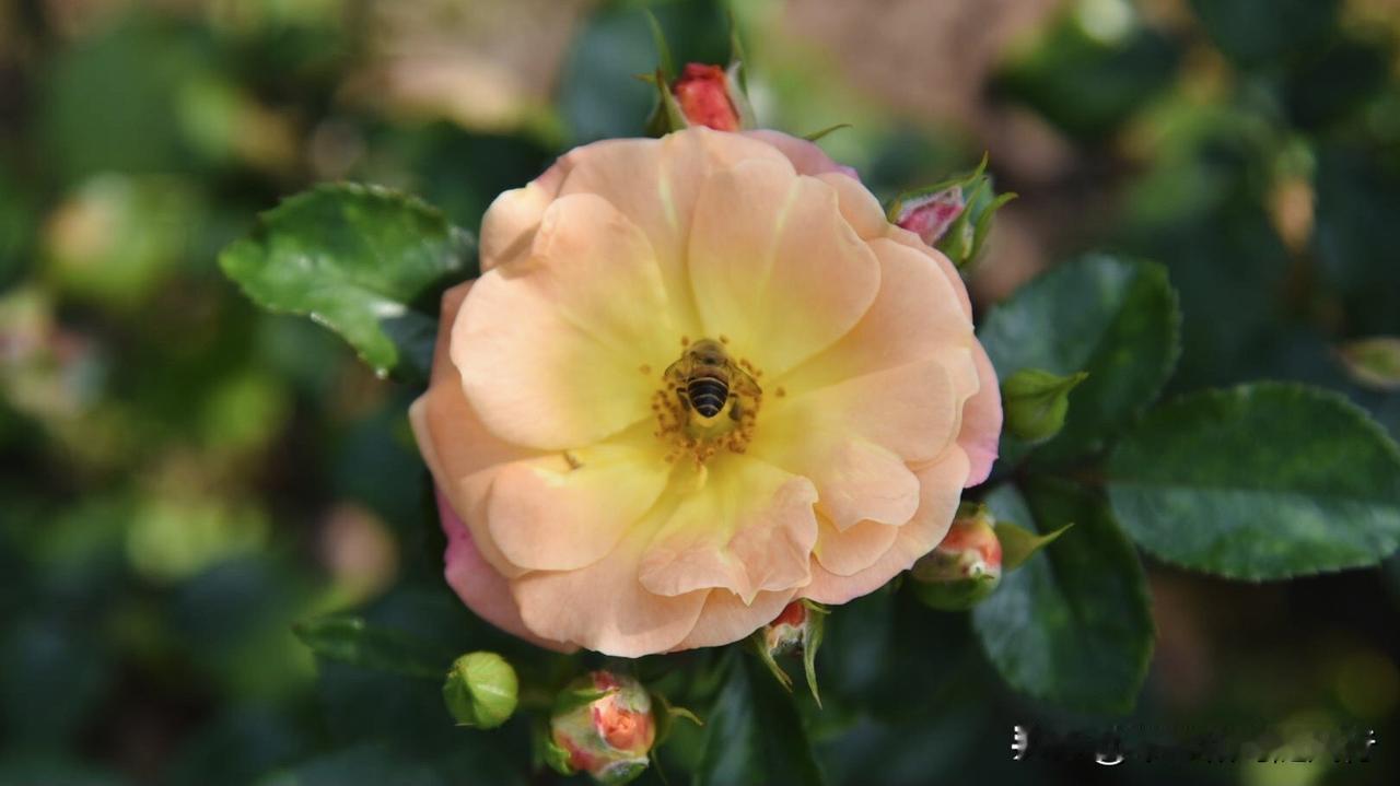 记录我的2026春风和煦,当第一朵月季绽开,蜜蜂便循着香气而来——它们在花瓣间穿