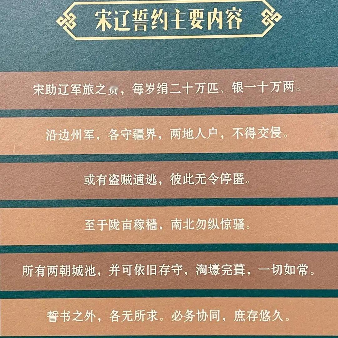公元1005年正月,盟约签订。辽宋为兄弟之国,宋每年给辽岁币,双方边境开榷场互市。