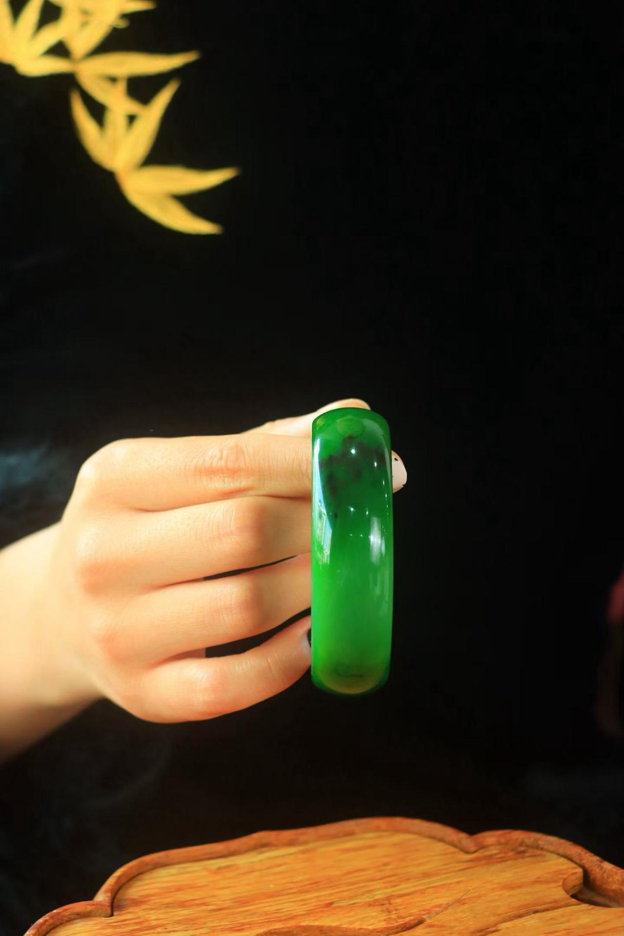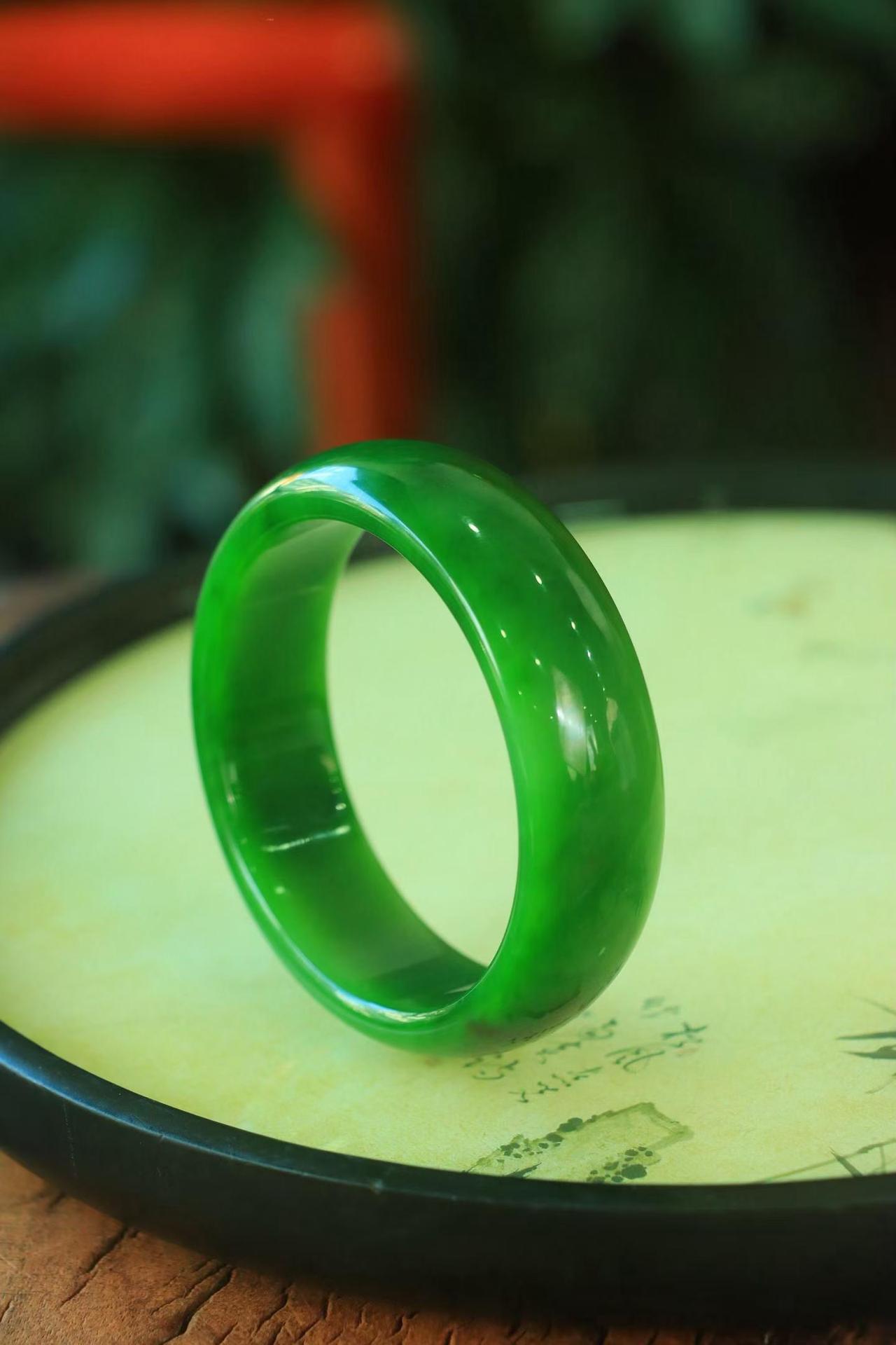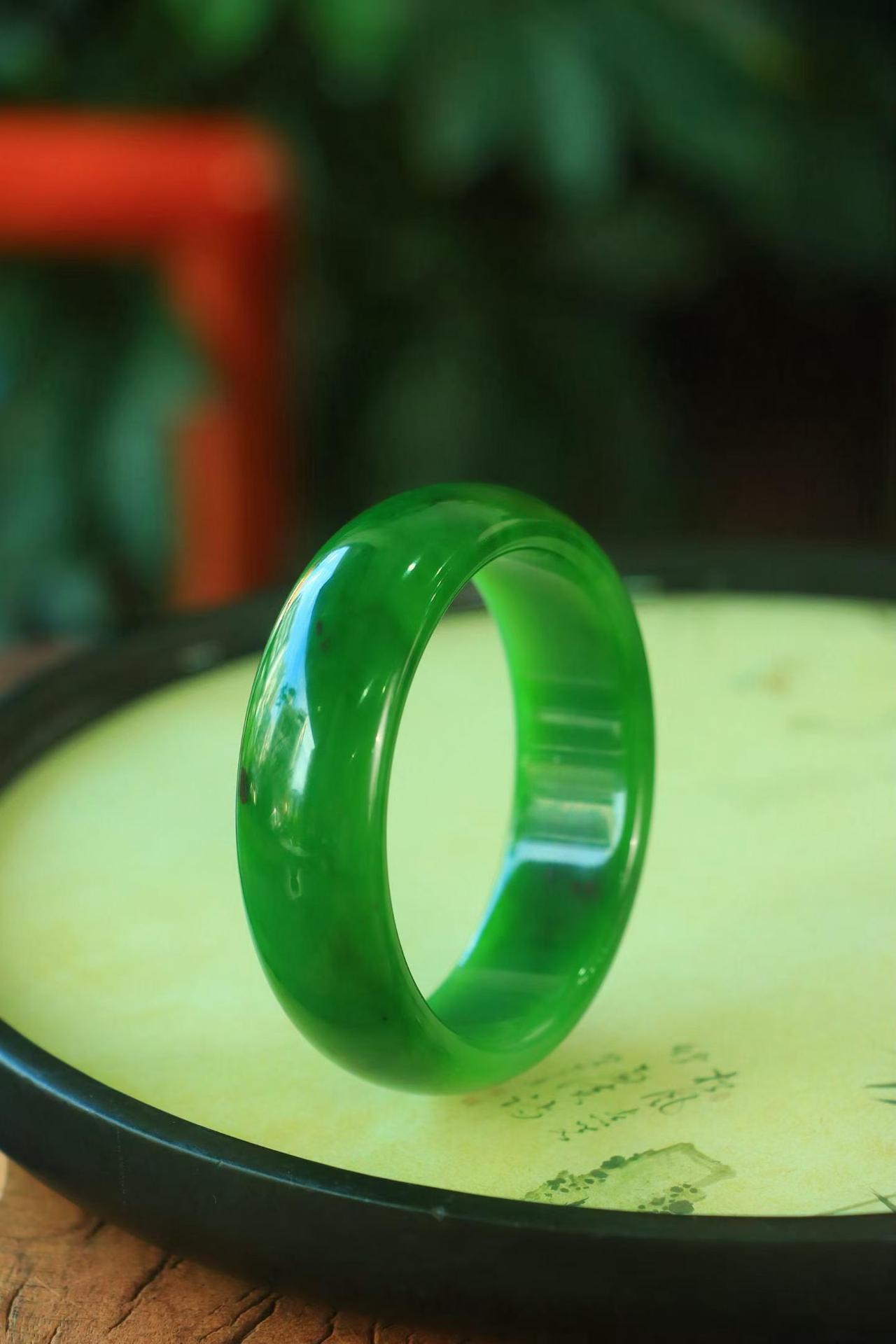 〈碧色荡漾·手镯〉🌷🌷 和田玉碧玉手镯,玉质极其细腻温润,手感舒适,☁️线条流畅,简约大气,美自天成,佩戴于腕间,婉约之美,举手投足间透出那份低调奢华,醉人心扉。 规格:宽20厚8圈口58.6重81.8