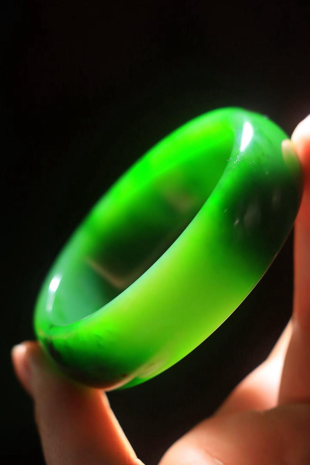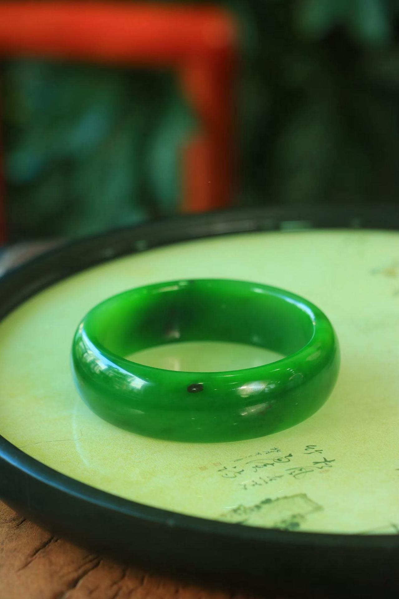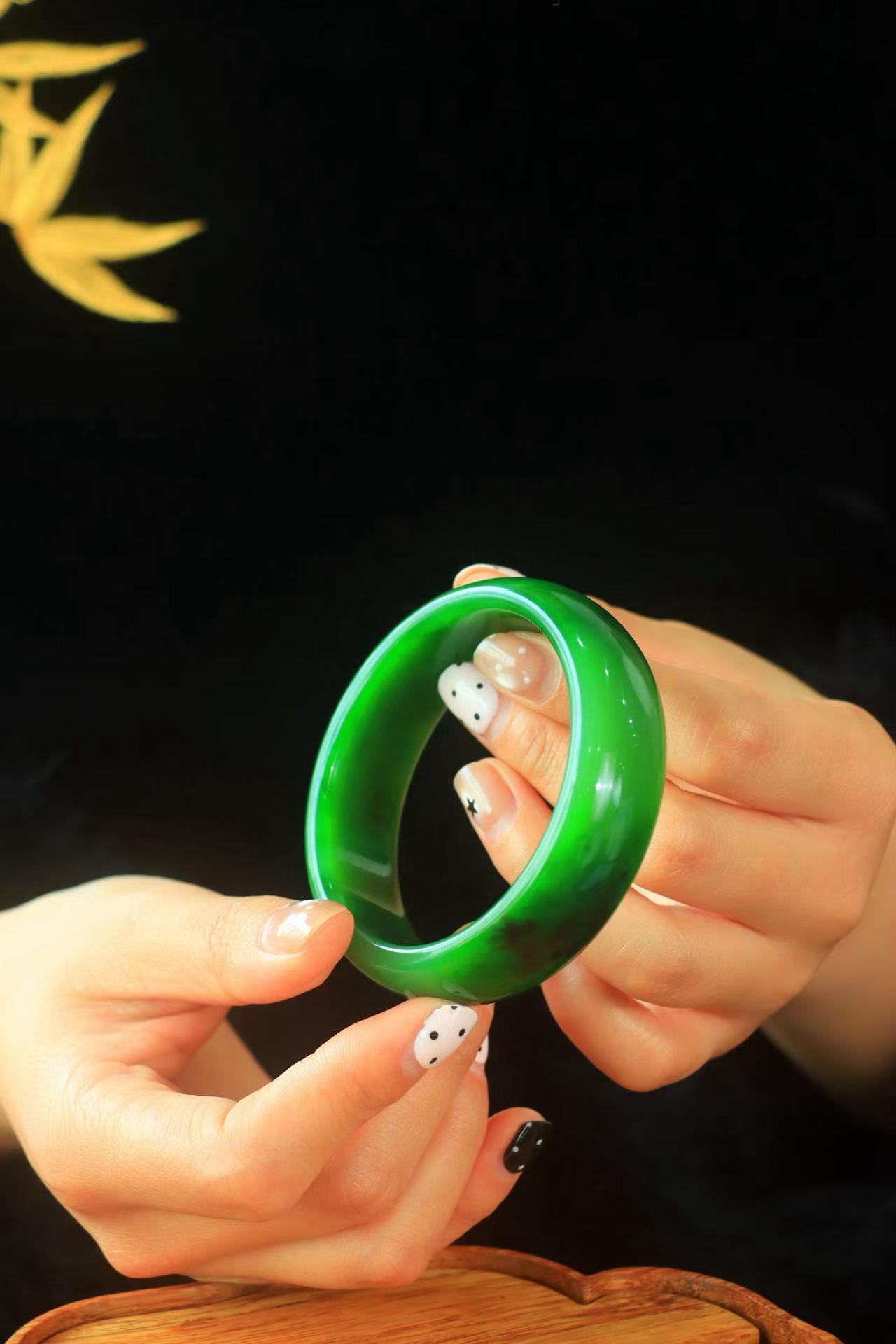 〈碧色荡漾·手镯〉🌷🌷 和田玉碧玉手镯,玉质极其细腻温润,手感舒适,☁️线条流畅,简约大气,美自天成,佩戴于腕间,婉约之美,举手投足间透出那份低调奢华,醉人心扉。 规格:宽20厚8圈口58.6重81.8
