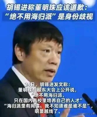 远的不说,就说去年吧,董小姐就因为说了句“不用海归”,就遭到了老胡的猛烈批判,然后跳高三尺的要求董小姐出来道歉!