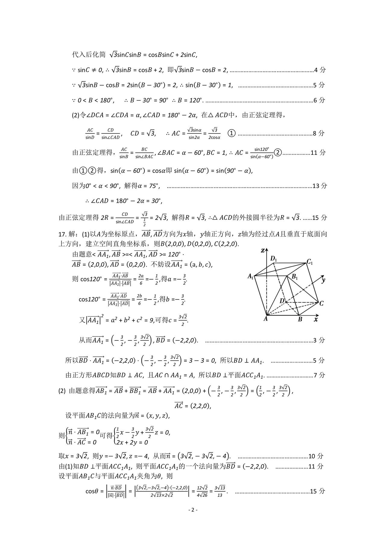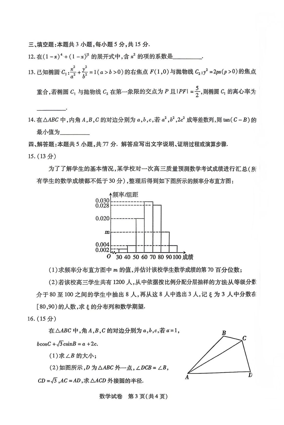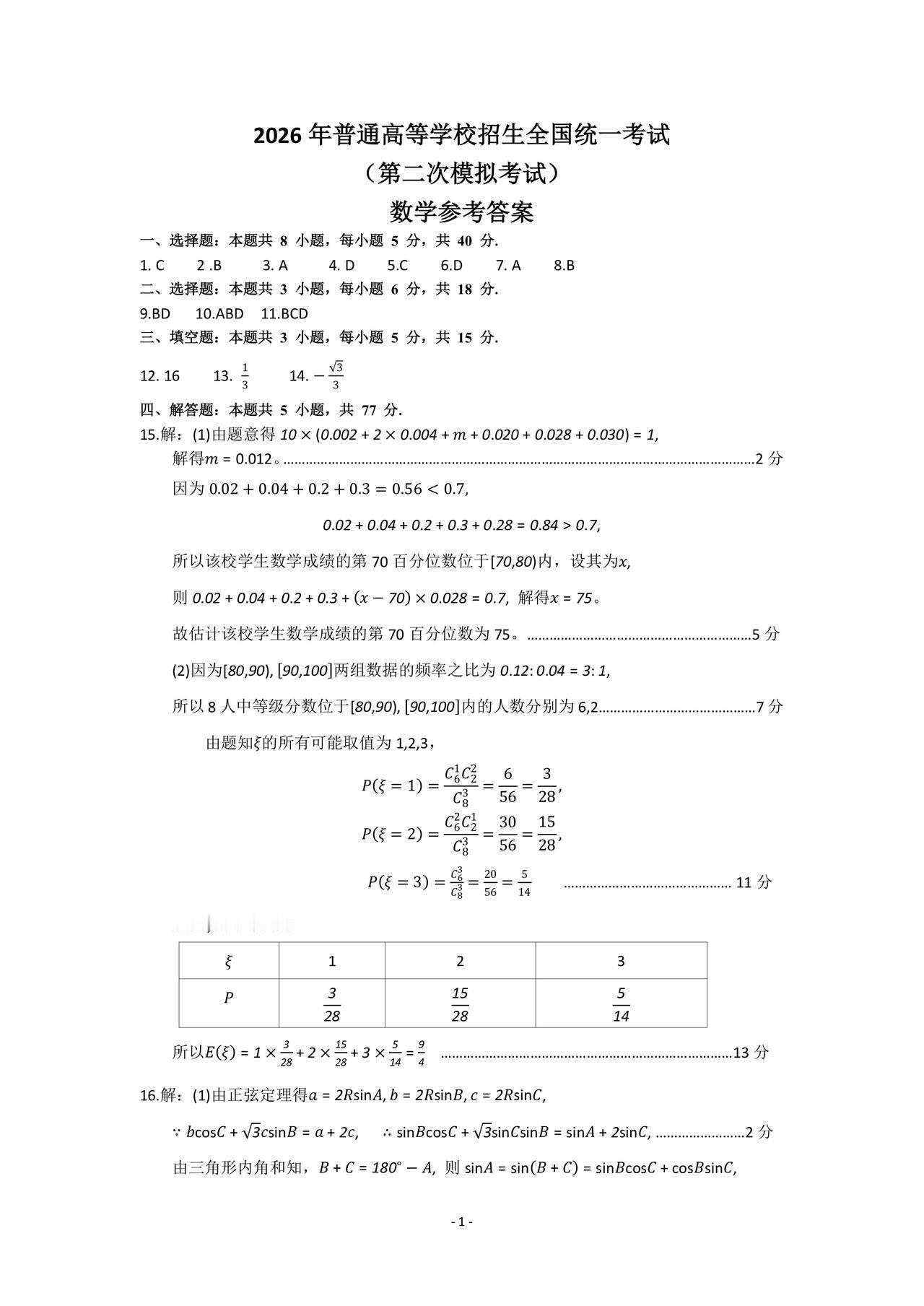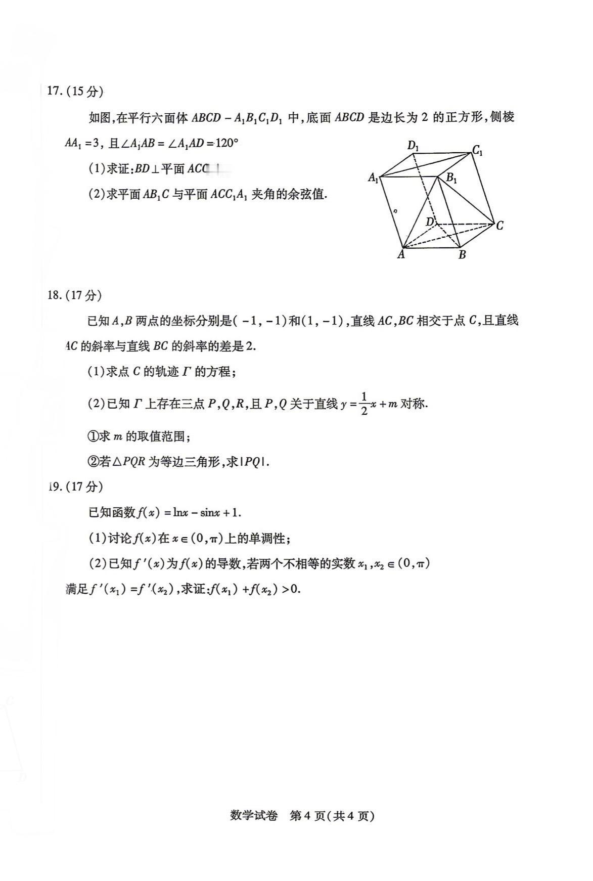 内蒙古包头市2026届高三4月二模考试数学试题及答案