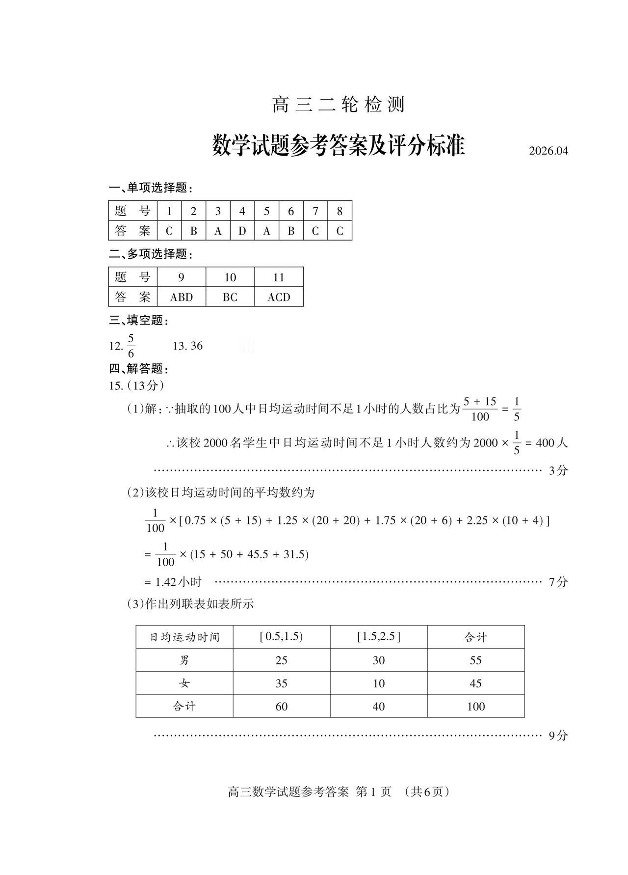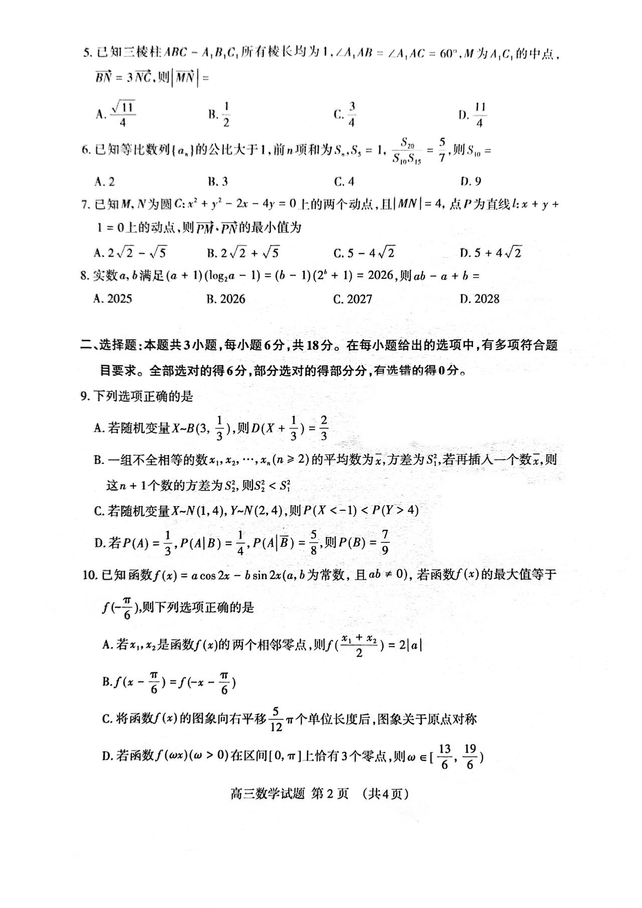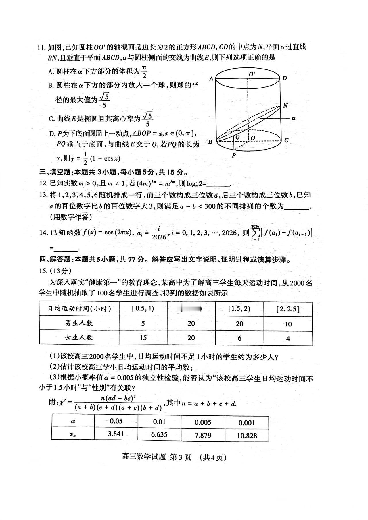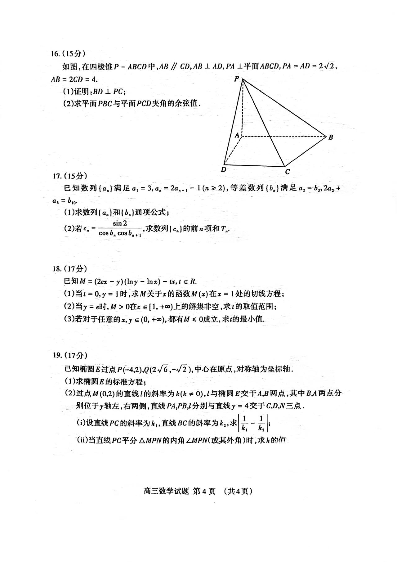 山东省泰安市2026届高三4月二模考试数学试题及答案