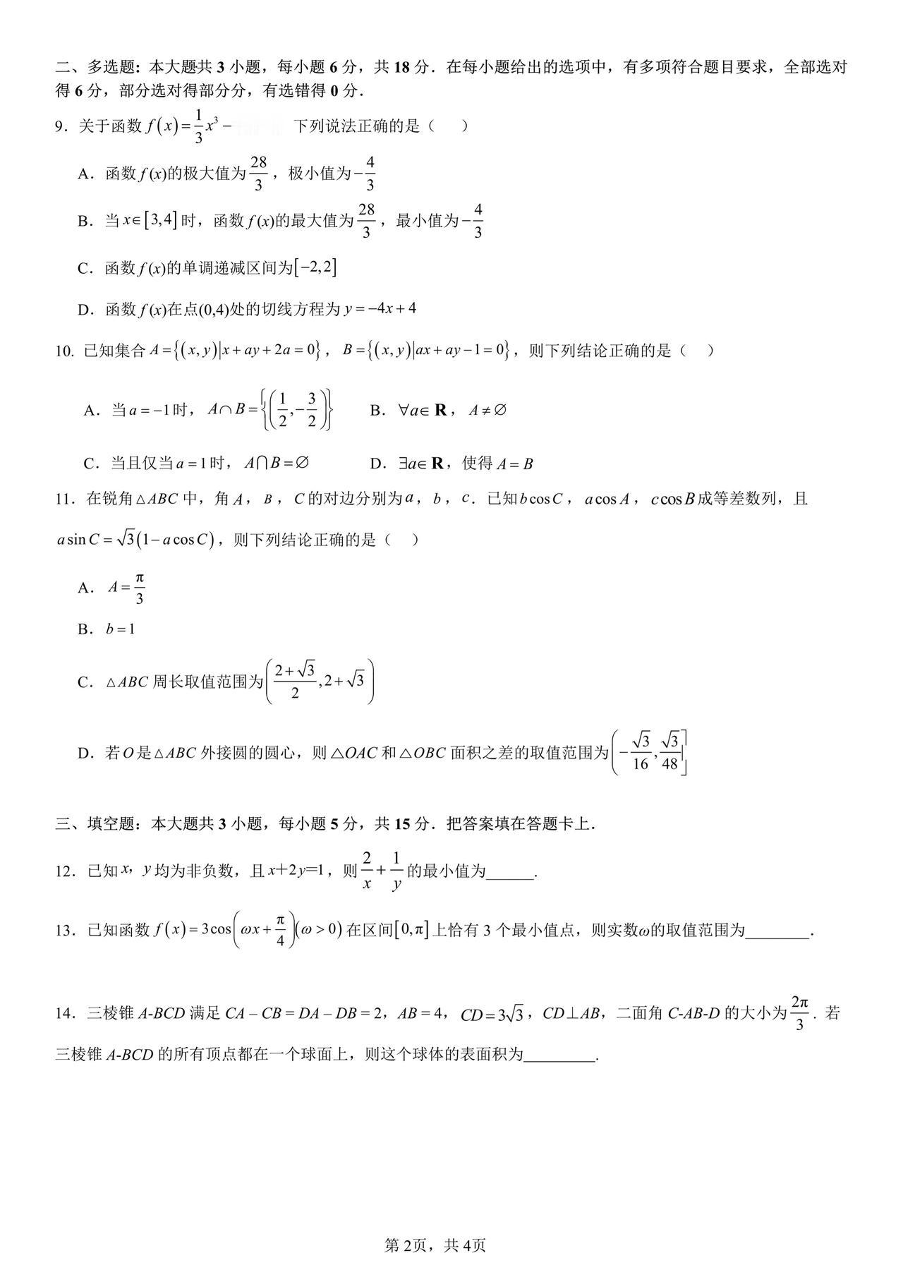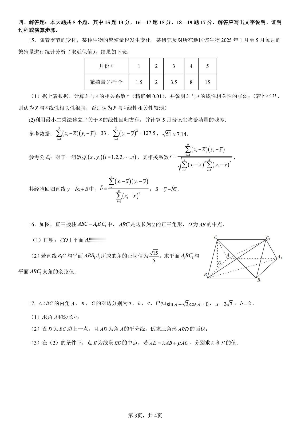 四川省成都市七中2026届高三4月阶段测试数学试题及答案