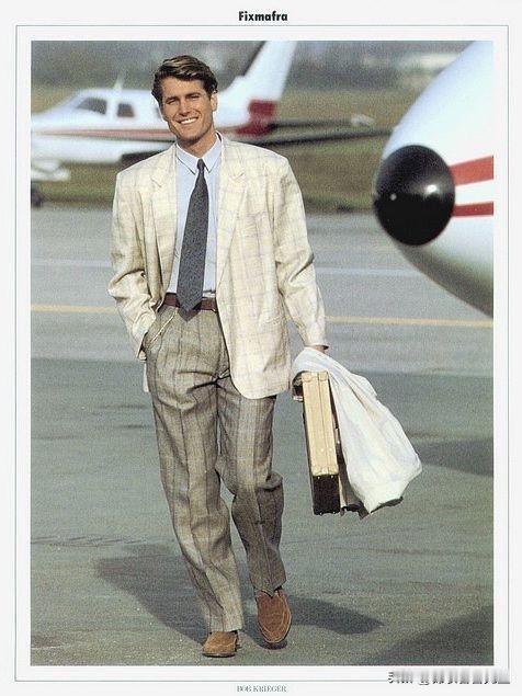 今天我们来聊聊80年代的西装风格,80年代男士西装的核心,就是“权力”与“炫耀”。70年代的嬉皮风和紧身衣让男性形象显得阴柔。80年代则转向了极端阳刚,用夸张的宽肩和硬朗线条,回应了冷战后期对强权男性气质的心理需求。最显著的特征是宽大的垫肩,比实际肩部宽出不少,塑造倒三角体型。为突出肩宽,腰部收窄比较明显,形成“X”型效果。双排扣极为流行。这个时代的人们偏好厚重挺括的面料,如精纺羊毛或法兰绒。80年代经济繁荣,金融从业者成为文化偶像。他们把西装视为战袍——衣服越宽大、条纹越醒目,代表职位越高、交易额越大,这点从华尔街之狼这部电影里也能看出一些端倪。在追求外露的财富观下,一套做工精良的西装就是实力的实体名片。而美剧《迈阿密风云》的热播则把浅色西装与T恤的穿法带入日常,让西装从刻板的正装变成了时髦单品。总的来说,80年代男士西装通过宽肩、收腰、重条纹建立了视觉权威。虽然这种风格在90年代被极简主义取代,但最近复古回潮的“权力西装”,依然在借用那个时代的一些元素。你喜欢80年代的西装风格吗?穿搭 男士穿搭