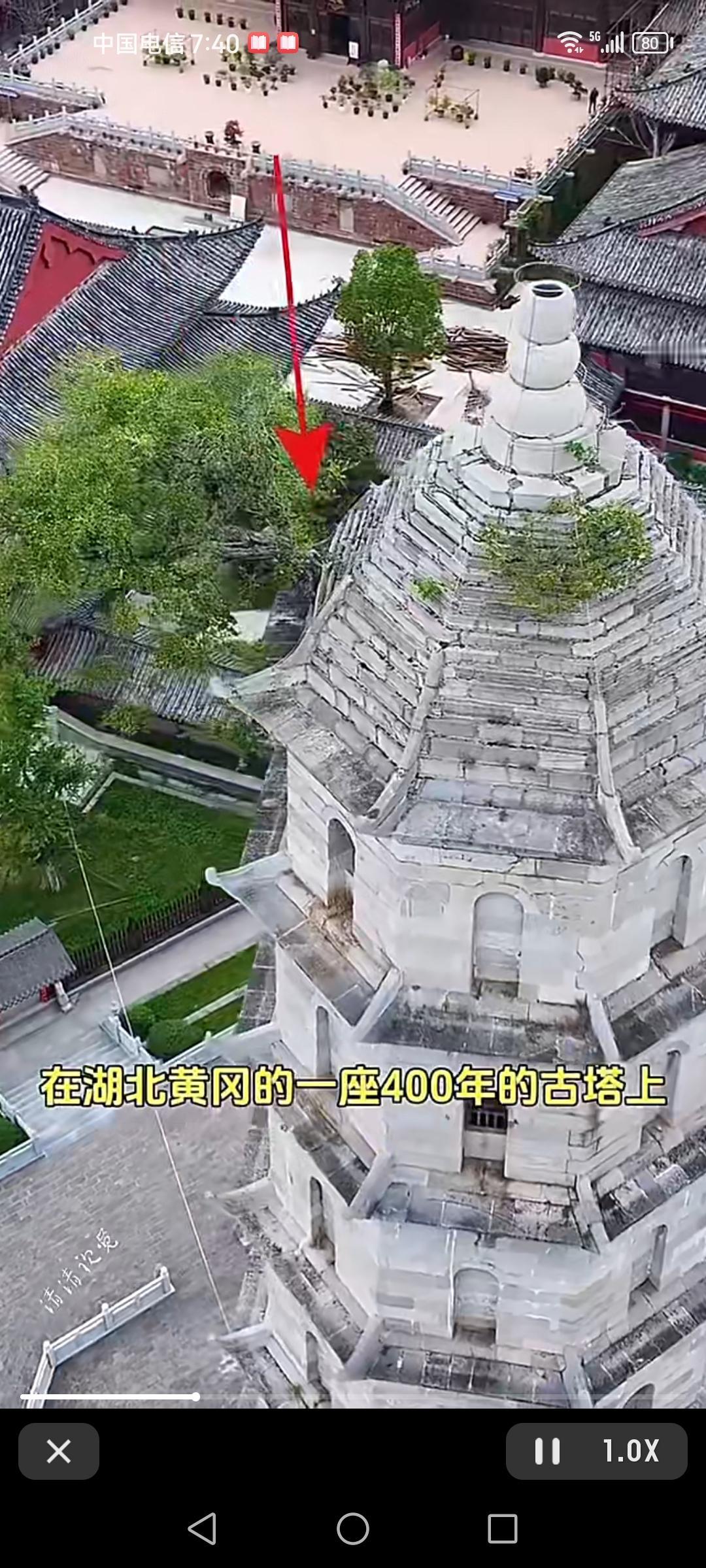 神奇的是,塔顶长了一棵朴树,与古塔共生129年。这树离地数十米,无土无水,却久涸不枯,树干碗口粗,枝叶繁茂。2022年它还成了黄冈市十佳网红古树,在大家心中,它象征着不屈精神。就像长沙惜字塔上的树一样,都是大自然的鬼斧神工,让人不得不感叹世界的奇妙!