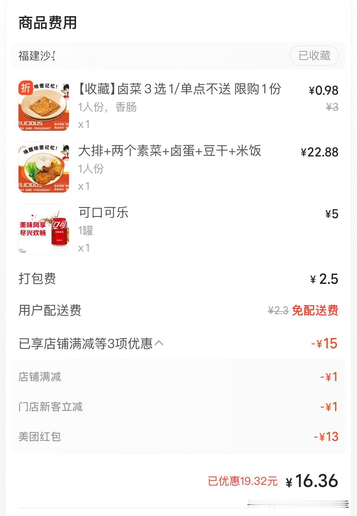 回家后,人疲倦得不行。但再不舒服也得吃饭,拿起手机选了家还行的食堂店,点了份快餐。有肉、有菜、有饭,外加一瓶饮料,结账17元有找。虽不是什么山珍海味、但家常菜的味道,很能抚慰身体上的不适。