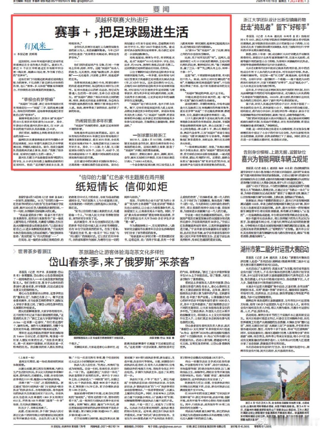 把足球踢进生活台州赛区人气爆棚浙报点赞吴越杯台州赛区,创单场上座新高,文体商旅深度融合。