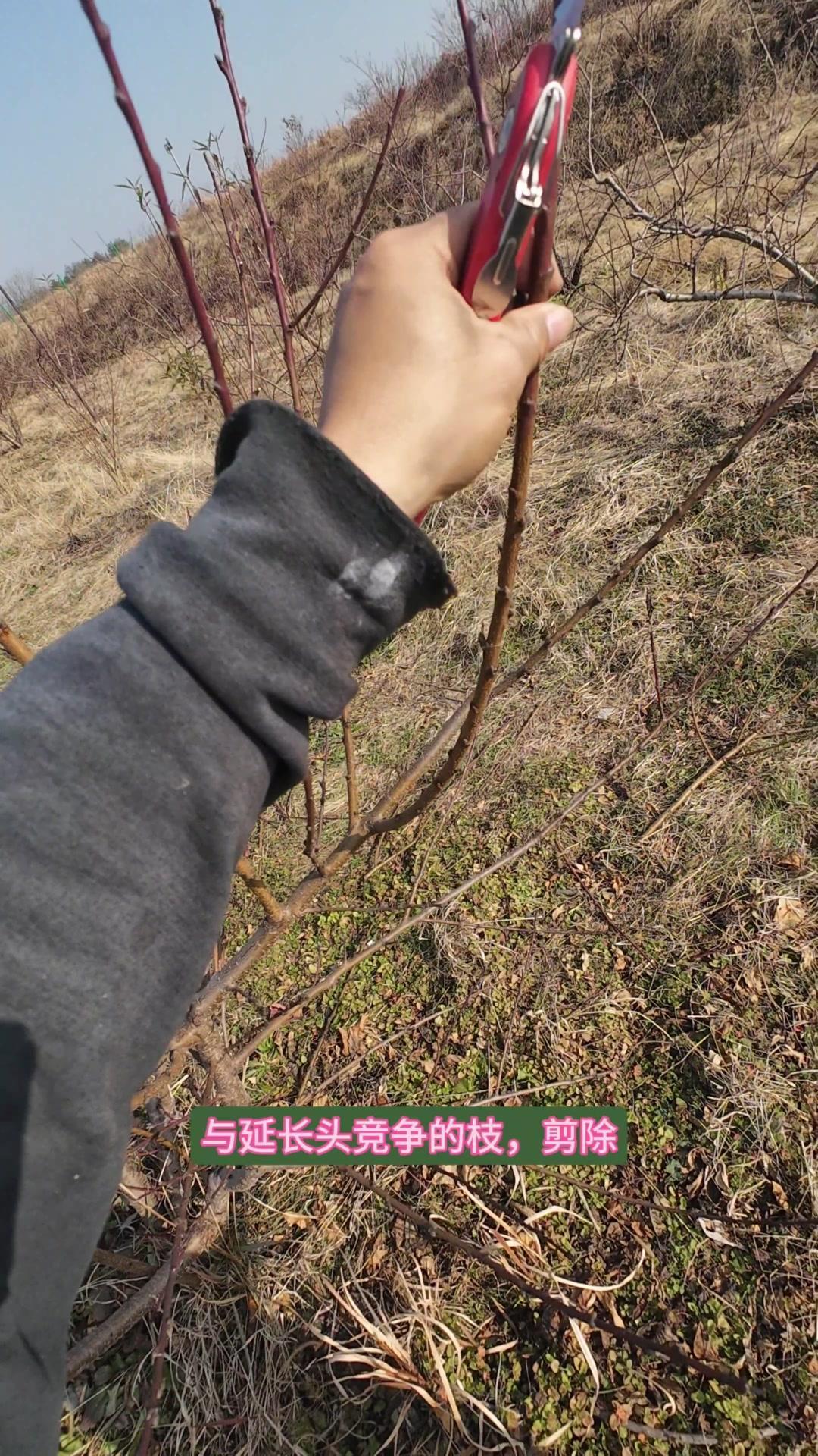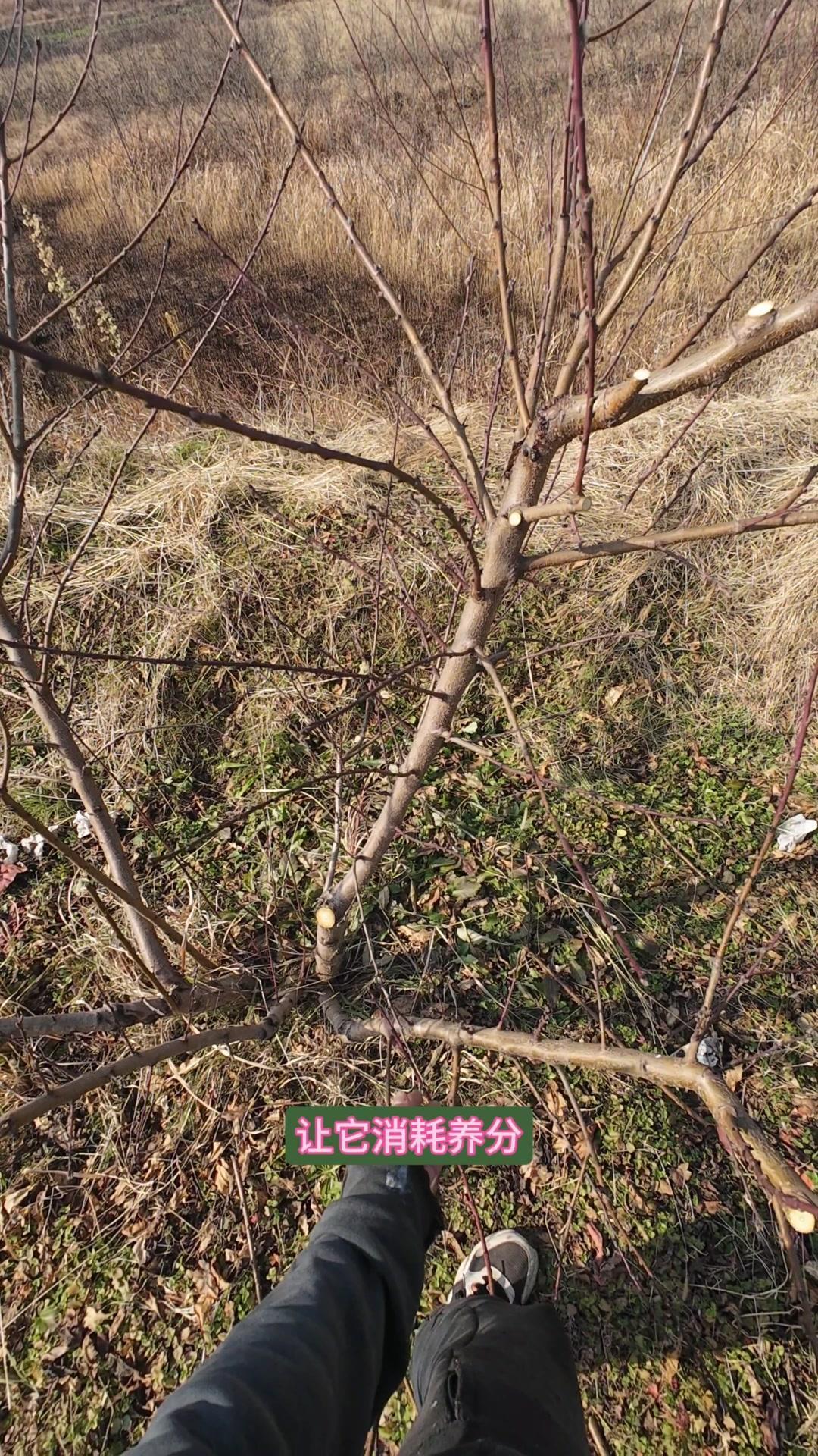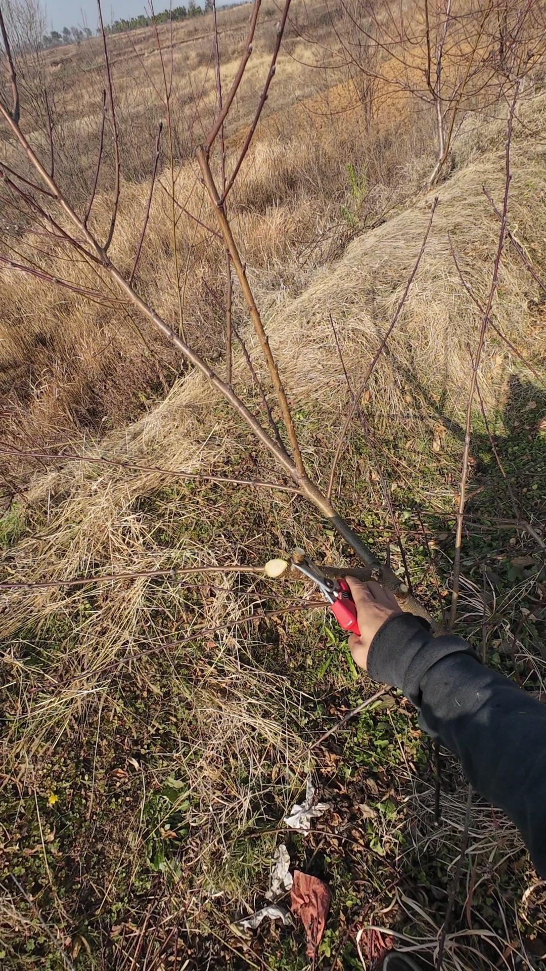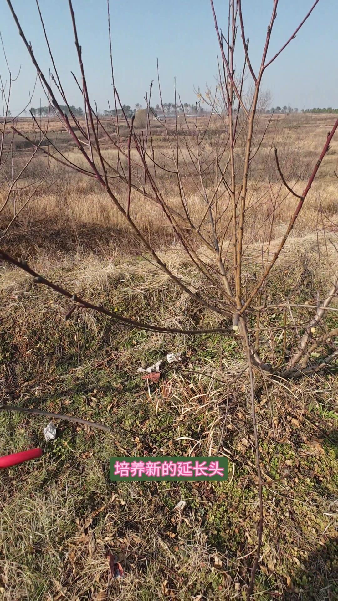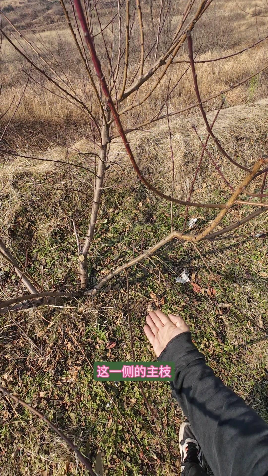 修剪时要先保留结果枝,选留骨架,培养成四主枝开心型。中间直立的粗壮枝要锯掉,主枝角度好的留下。背上强旺枝剪掉,保留单枝向前延伸,下部细枝全部保留。