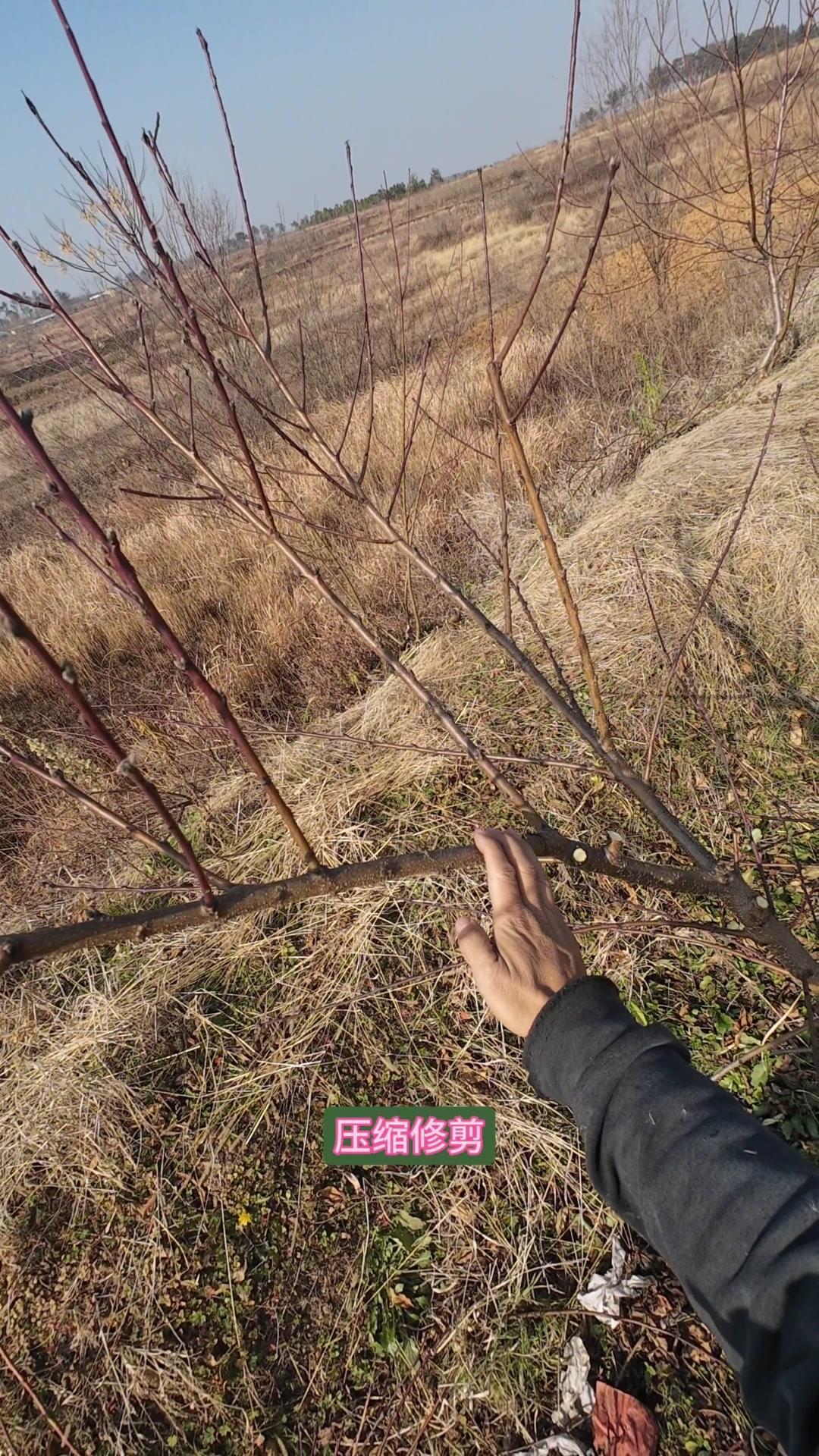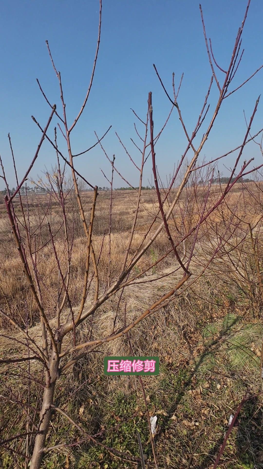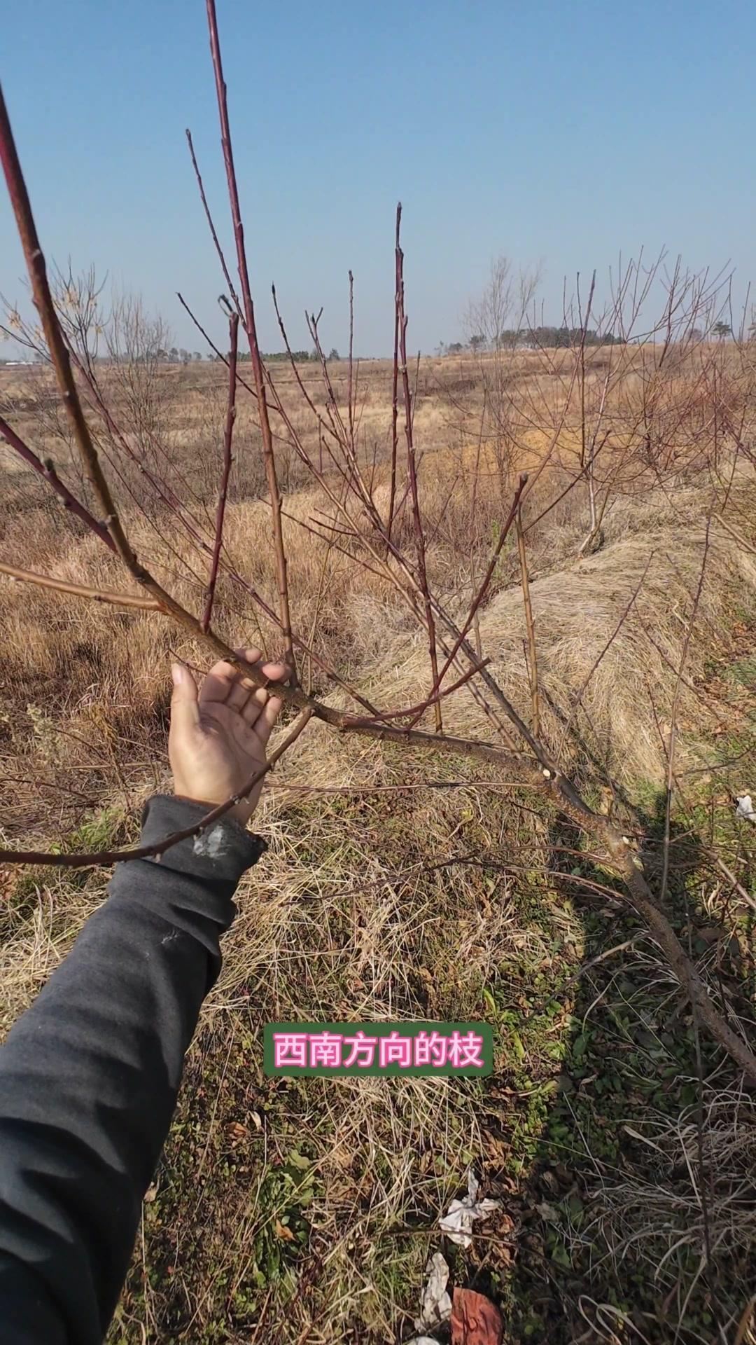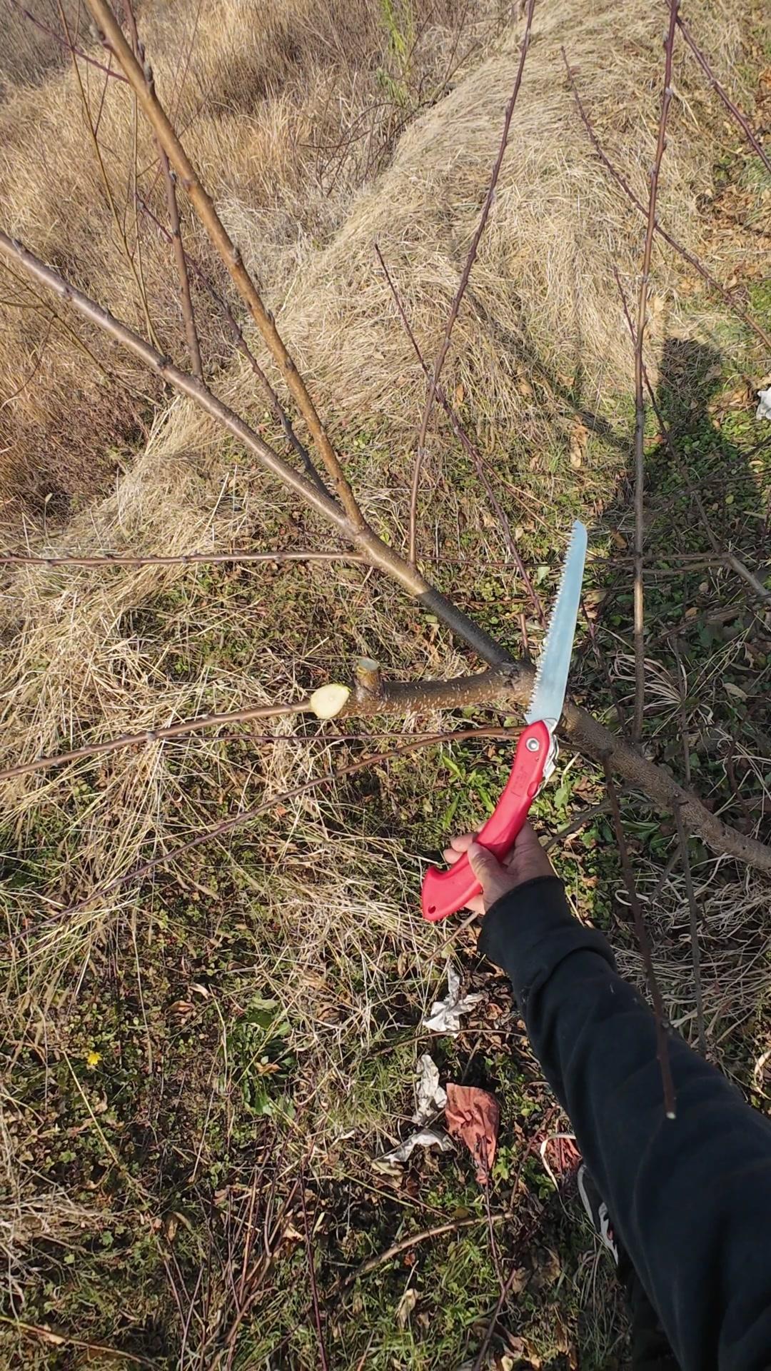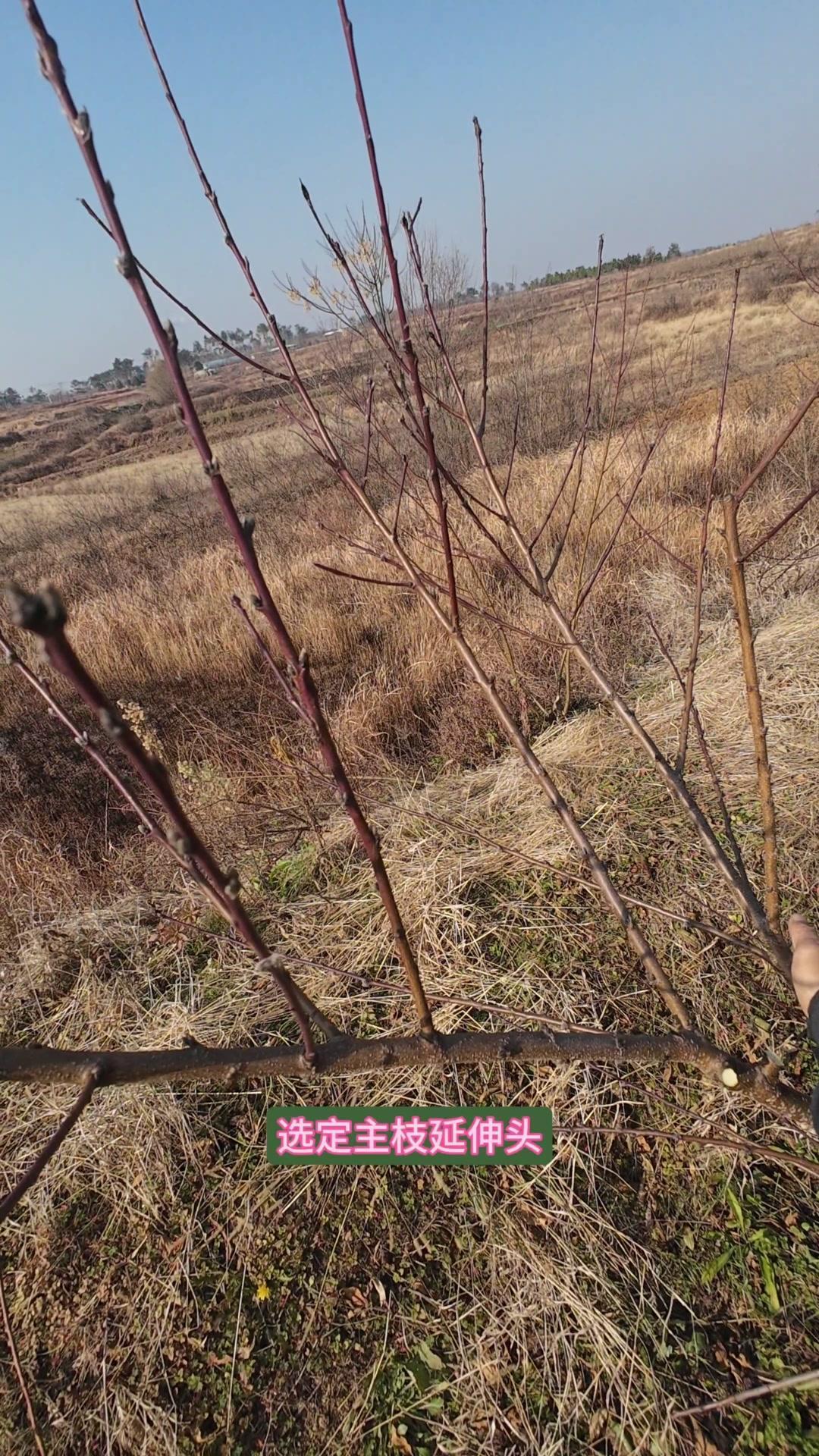 修剪时要先保留结果枝,选留骨架,培养成四主枝开心型。中间直立的粗壮枝要锯掉,主枝角度好的留下。背上强旺枝剪掉,保留单枝向前延伸,下部细枝全部保留。