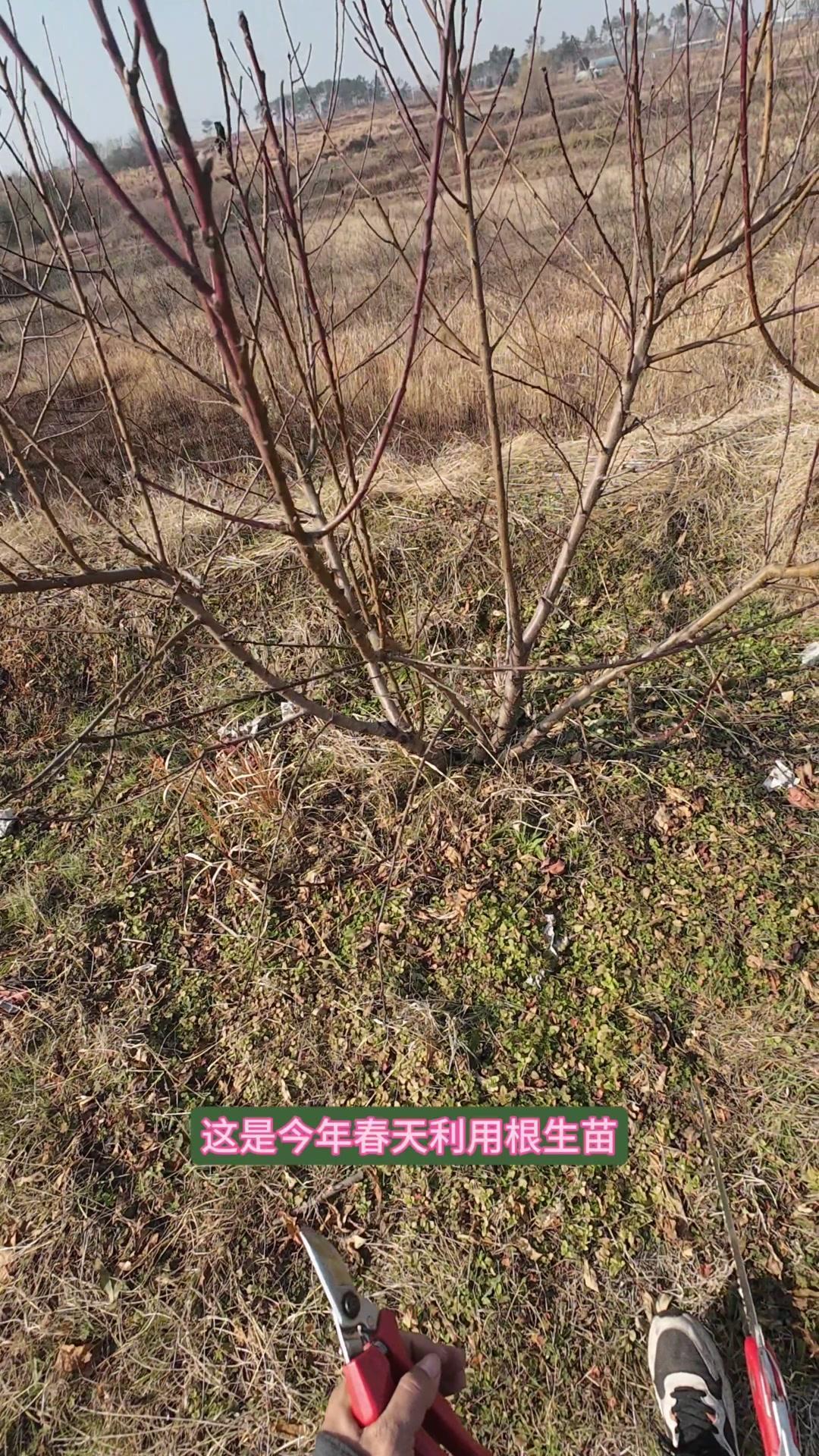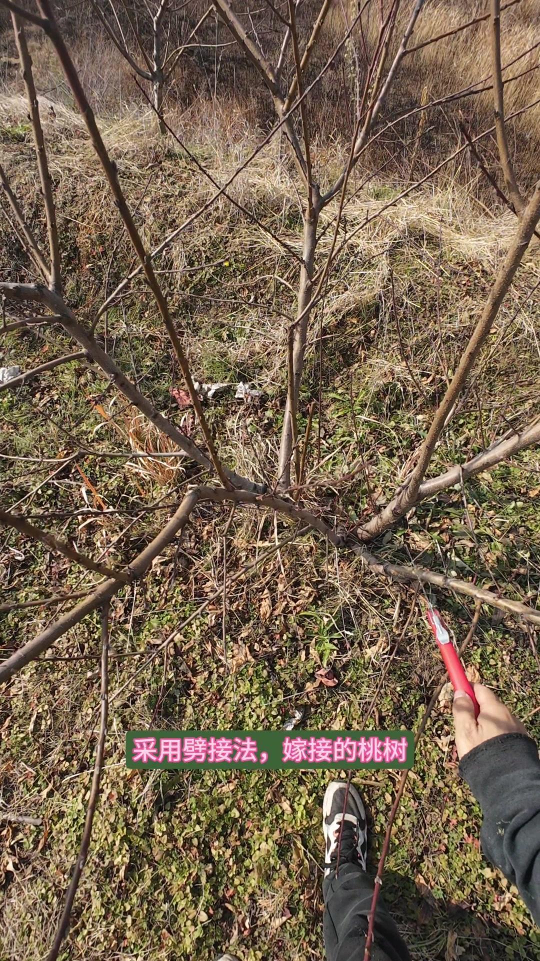 桃树开心型修剪,一年成型超简单!这是今年春天用根生苗劈接法嫁接的桃树,多芽点嫁接后一年就能成型,上面有很多优质结果枝,嫁接后明年就能丰产。老弱桃树底下的根生苗可以保留,利用老树强大的根系帮助快速复壮。