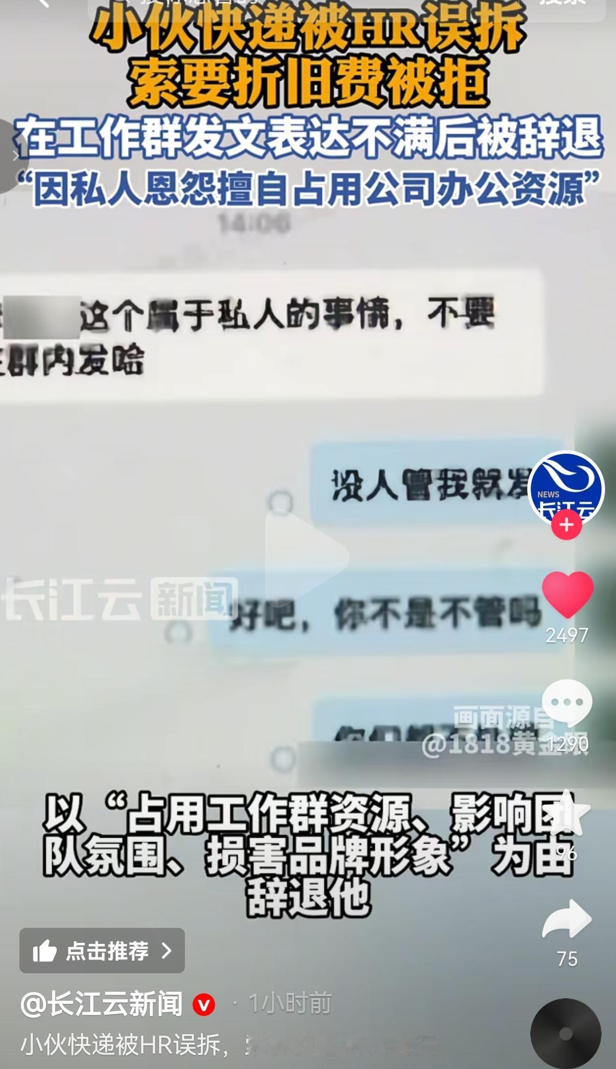 网友看到后评论说:这公司太离谱!HR私拆快递本来就违法,员工维权反而被开,还有天理吗?