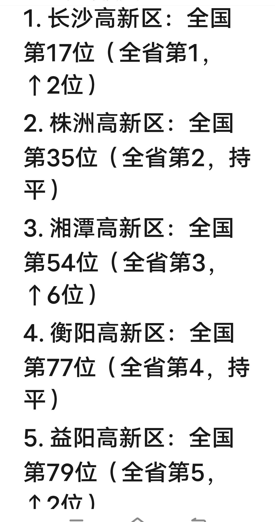 益阳的上市公司数量,在全国高新区的排名,应该是湖南的第二方阵了,超过了一些三线城市。不过益阳很低调。最近看了国家工信部发布的2025年度国家级高新区全国排名中 益阳高新区排名全国第79位(全省第5位,较去年上升2位),仅比衡阳高新区的77位低两个名次,大步超过了常德高新区排名的120位。