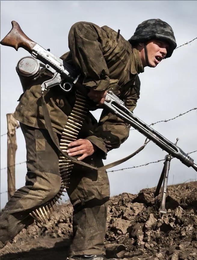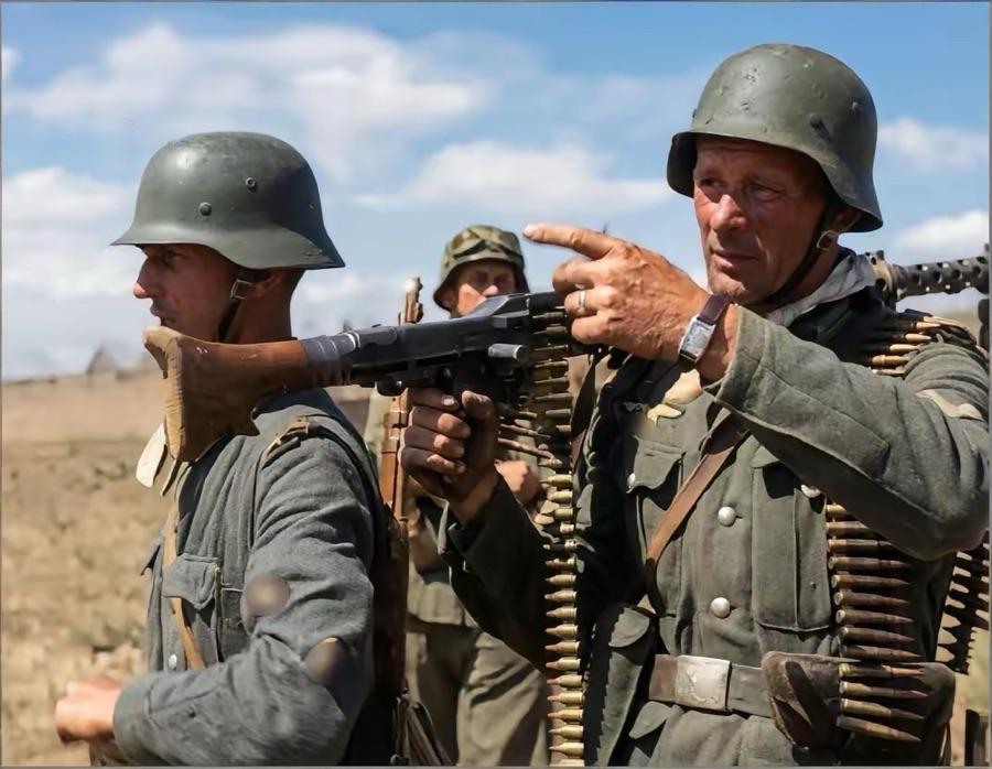 视频中二战德军士兵貌似有俩装备的是MG42通用机枪,其他皆为MG34!