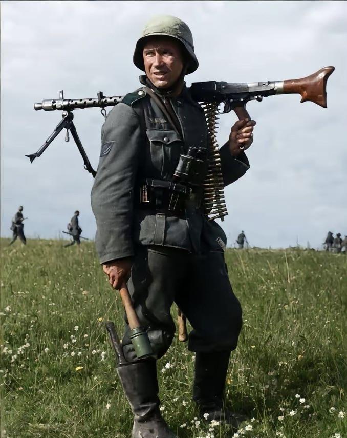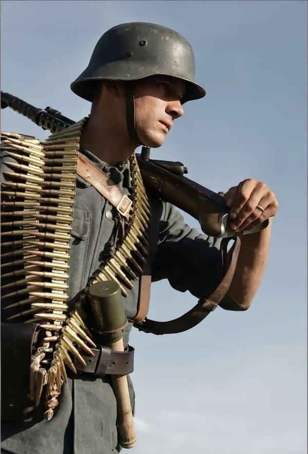 此外感觉其中一张照片并非当时拍摄的历史照片,而是现代军迷重演的,大家甄别得出来是图几不?德国机枪手 老照片 二战