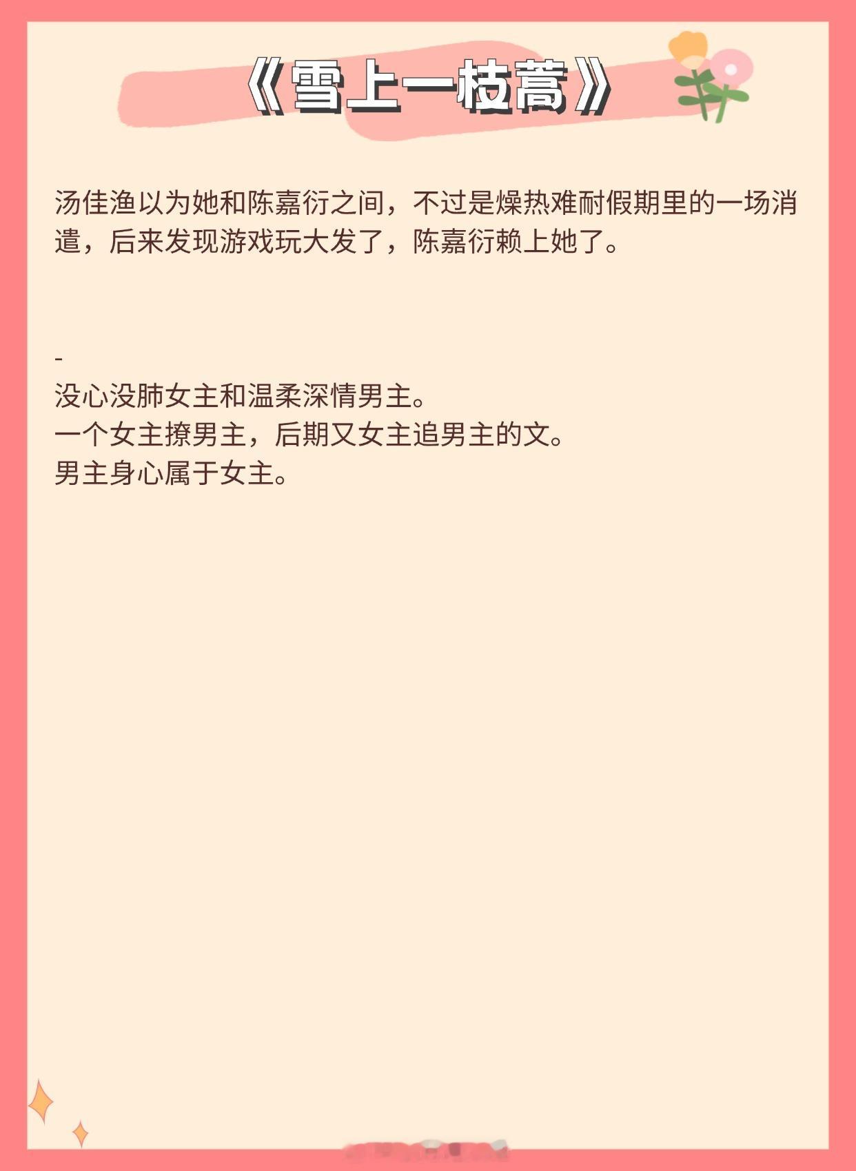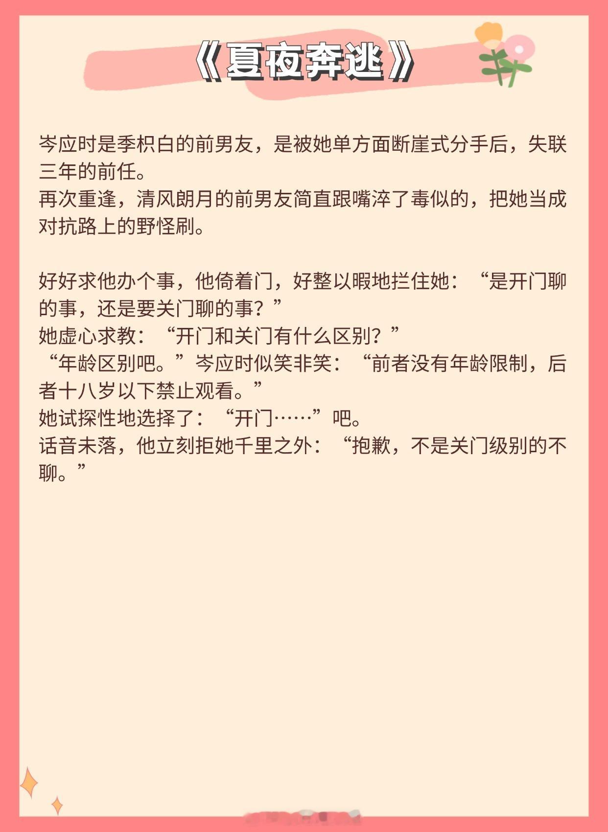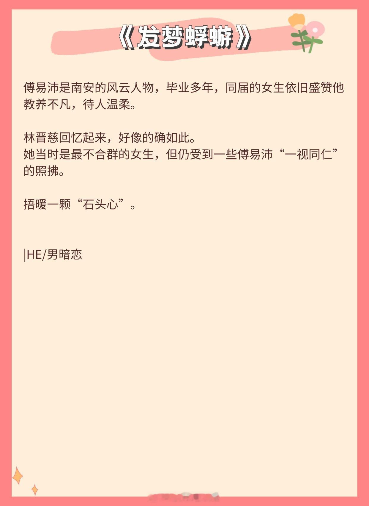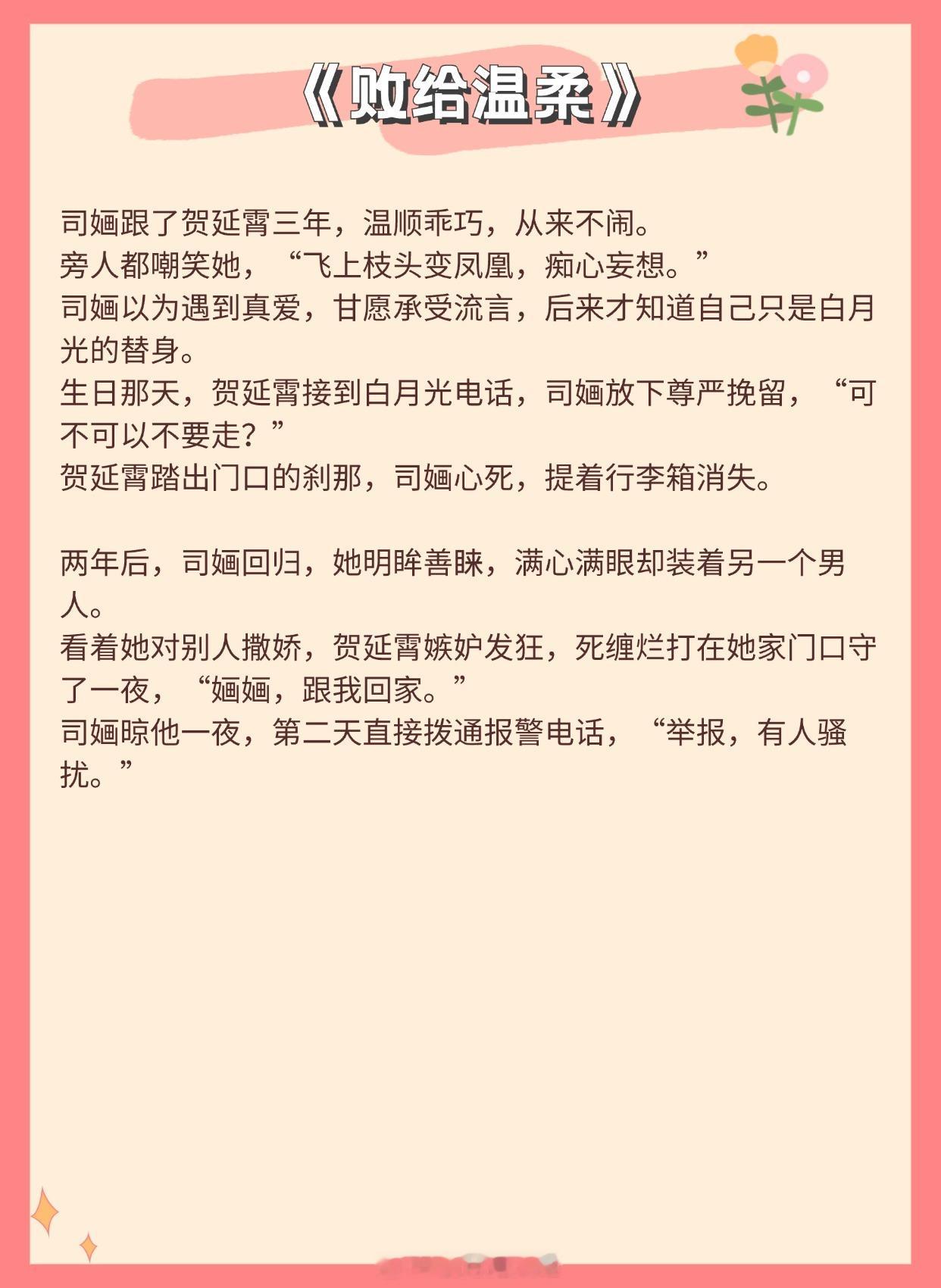 《败给温柔》作者:江萝萝《你若南风》作者:梦筱二《或许春天知道》作者:明开夜合《发梦蜉蝣》作者:咬枝绿《夏夜奔逃》作者:北倾《雪上一枝蒿》作者:黄鱼听雷推文推文言情小说推荐