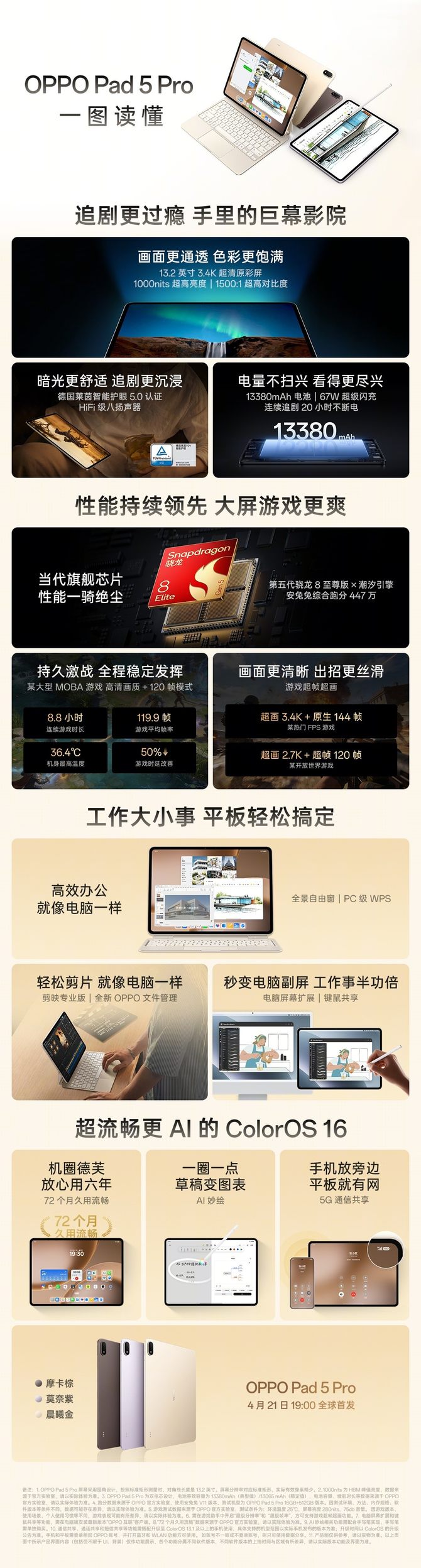 提供8+256GB、12+256GB、12+512GB、16+512GB四种存储规格,另有悬浮键盘和手写笔配件需单独购买。新机将于4月21日发布。