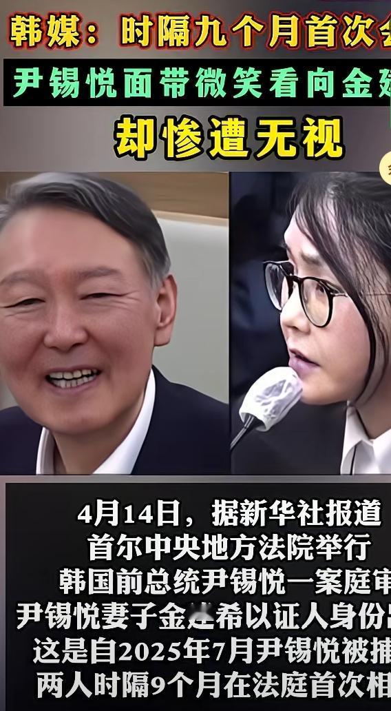 韩国前总统尹锡悦出庭受审,他妻子作为证人出庭,一年衰老了20岁的尹锡悦全程对所有人讨好媚笑,而他身边的妻子金建希连正眼都不肯看他一眼。