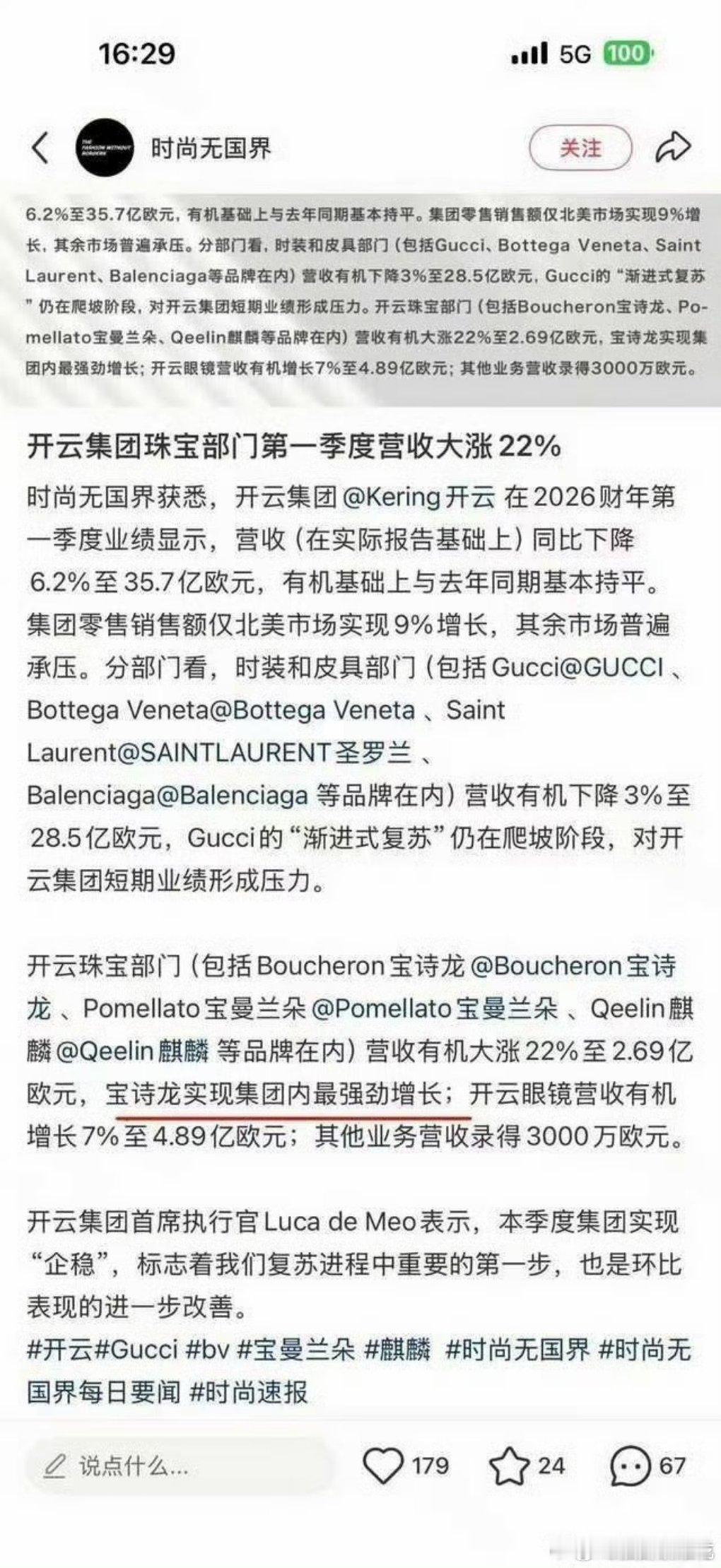 开云集团珠宝部门第一季度营收大涨22%,肖战代言品牌宝诗龙实现集团内之强劲增长🐮👏👏👏