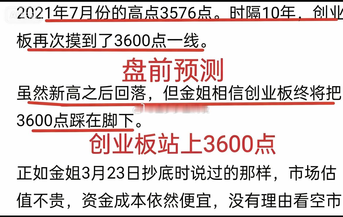 A股:创业板成功站上3600点,无疑是一个重要的里程碑!没想到,金姐今日盘前预测的目标(将3600点踩在脚下)这么快就达成了!