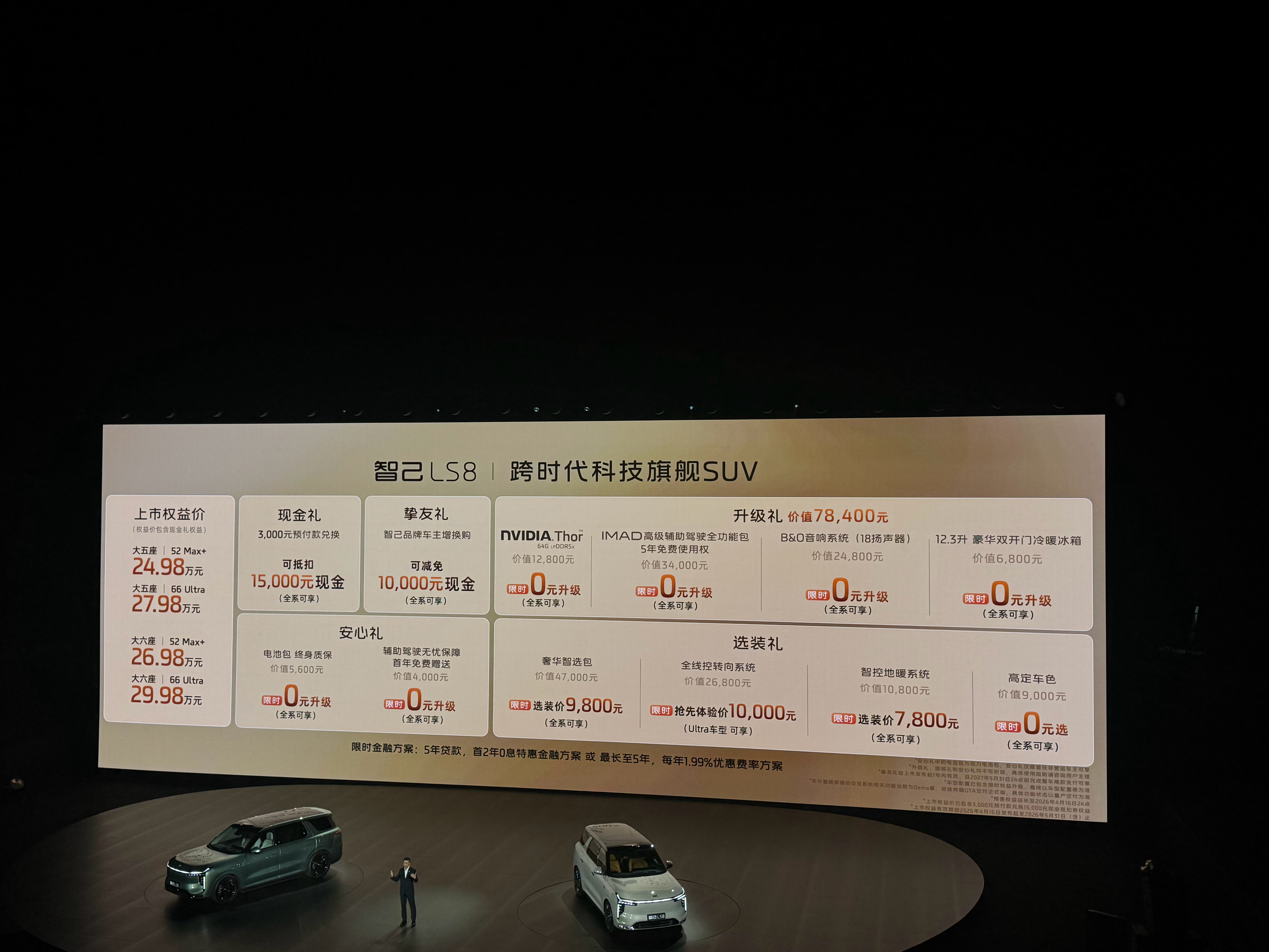 智己LS8价格来了,24.98万元起,如果要升级6座版的话,加2万元。