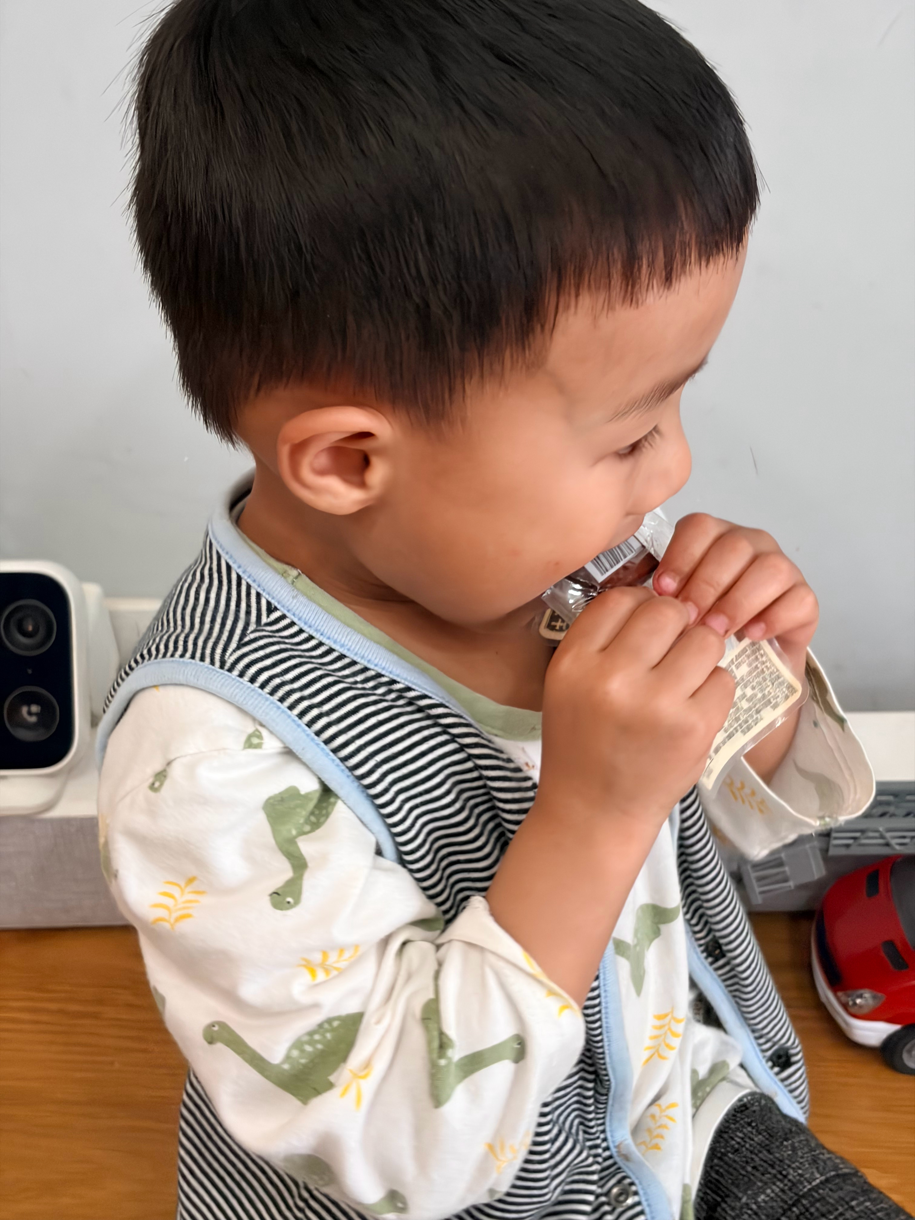 现在吃点啥零食都藏不住,这豆腐干我吃辣的他吃不辣的,包装都不用我帮忙打开,直接生啃撕开了。