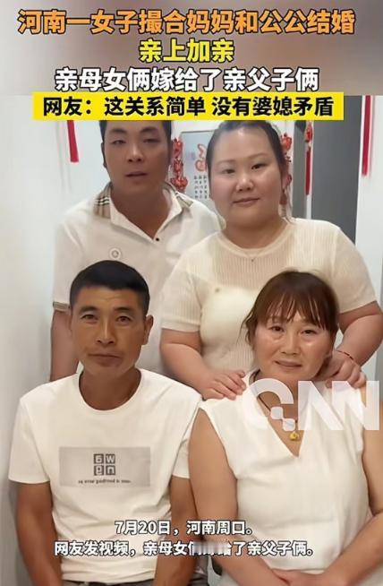 “彻底乱套了!”河南周口一女子结婚后,看公公天天闷在家里孤单寂寞,一咬牙,竟然将自己的亲妈许配给了公公。亲母女俩,直接嫁给了亲父子俩,四个人硬是拼成了一个新家庭!