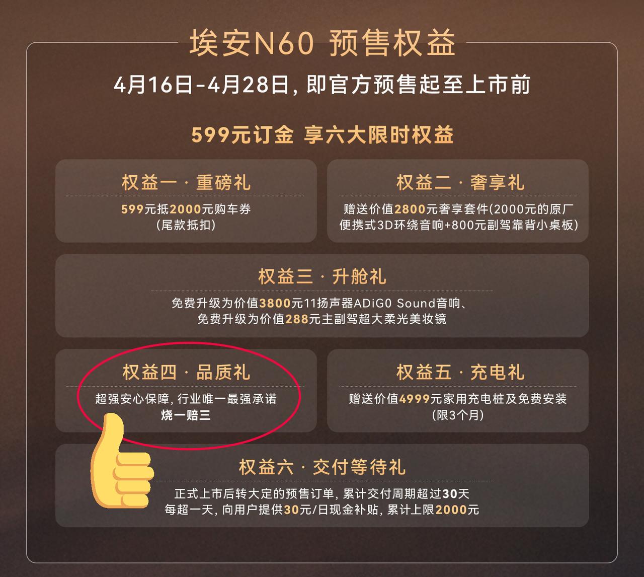 今晚这个狠啊,埃安N60预售11.58-13.58万,标配了一大堆值钱配置,包括激光雷达+4D毫米波雷达、副驾零重力座椅、前排通风/加热/按摩,3个版本配置一模一样仅仅是续航不同。