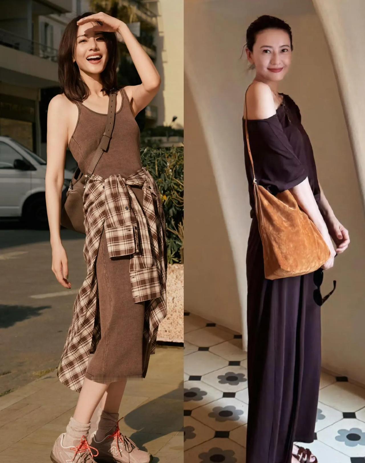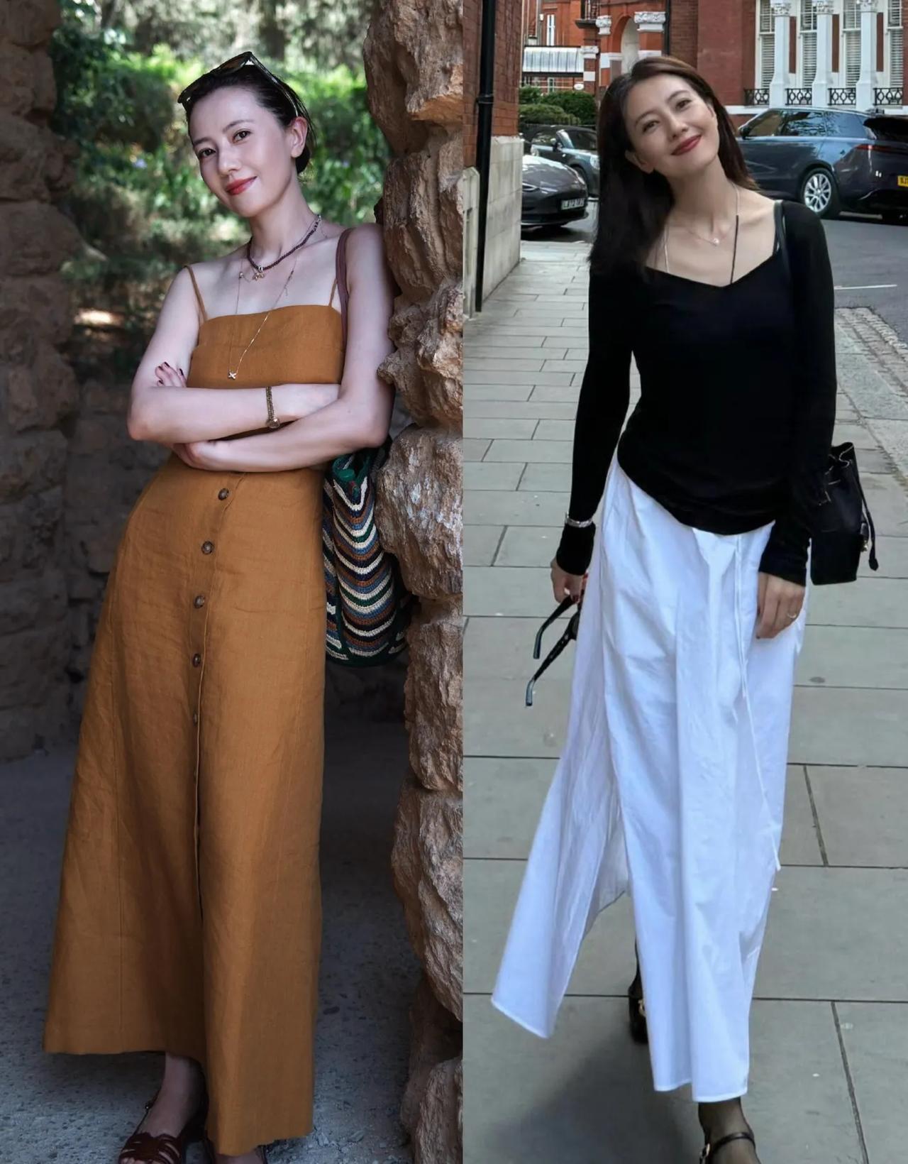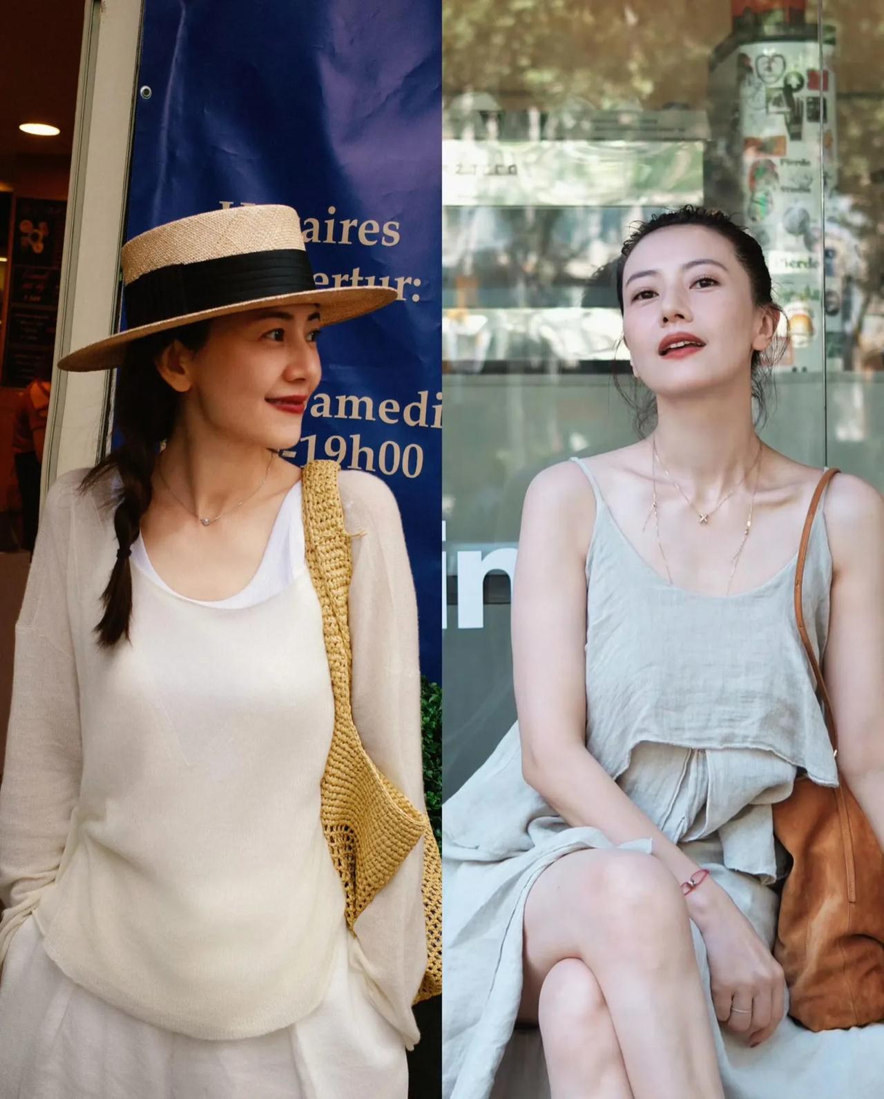 高圆圆的棉麻风穿搭,简直是成熟女性的穿搭模板,舒适又时髦👇