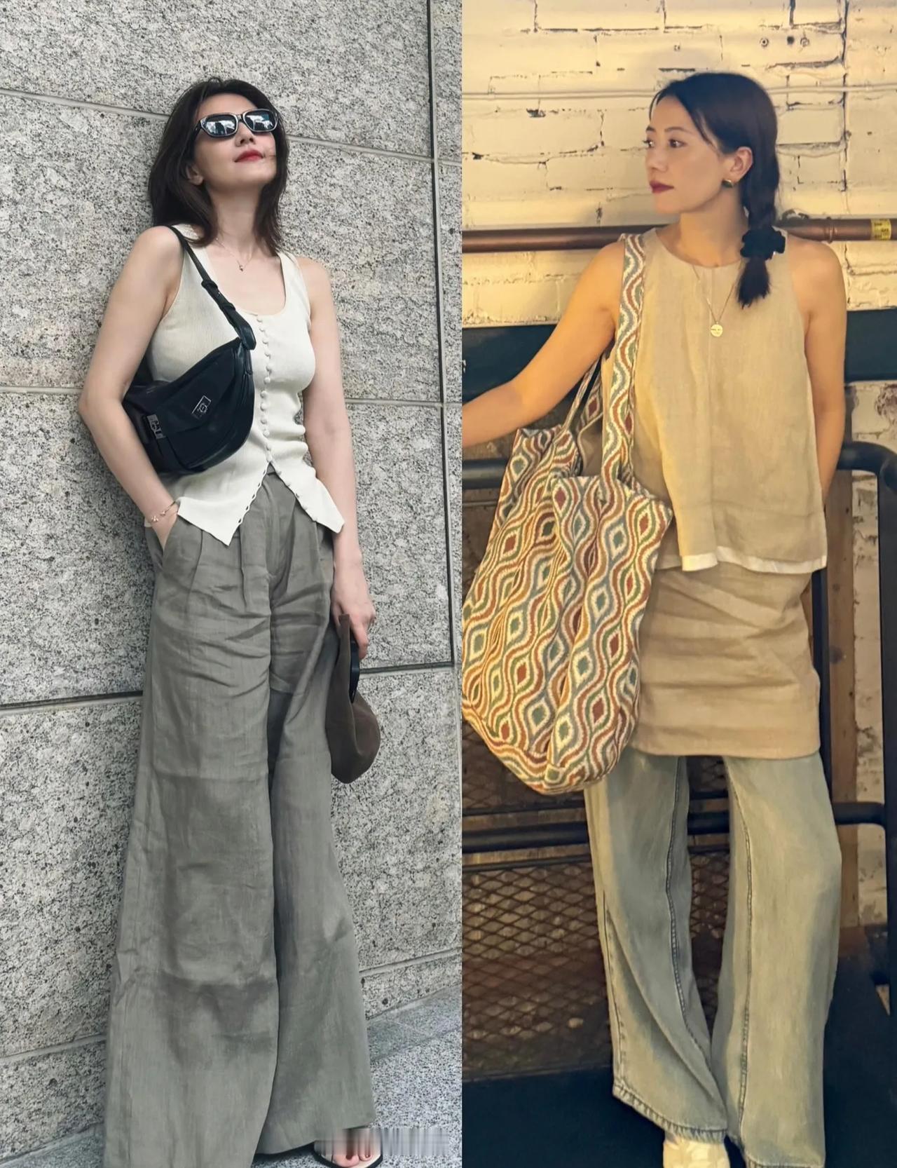 高圆圆的棉麻风穿搭,简直是成熟女性的穿搭模板,舒适又时髦👇 日常出门这么穿,清